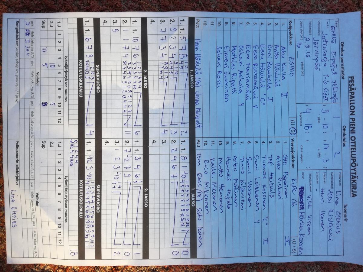 | 638511 | 2.9.2018 | Espoo | Kipe E-pojat | 1-2 (9-10, 17-3, 4-18) | näytä |