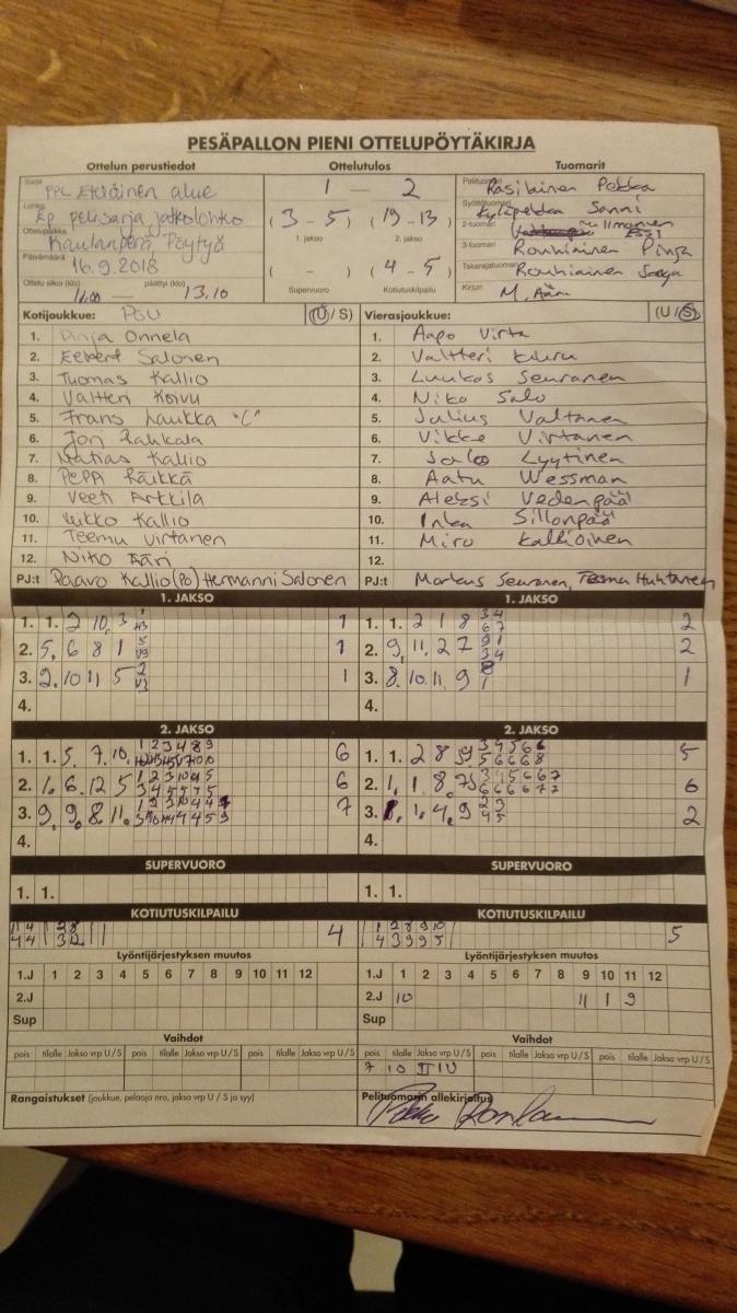 | 639361 | 16.9.2018 | PöU E-pojat | HuVe | 1-2 (3-5, 19-13, 0-0, 4-5) | näytä |