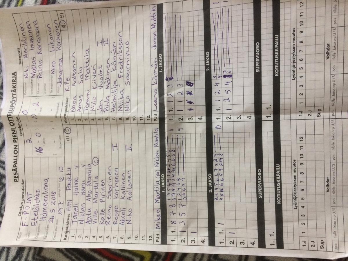 | 548300 | 19.8.2018 | Tahko Yellow | HML Paukku Fp | 1-2 (11-13, 8-7, 0-0, 2-5) | näytä |