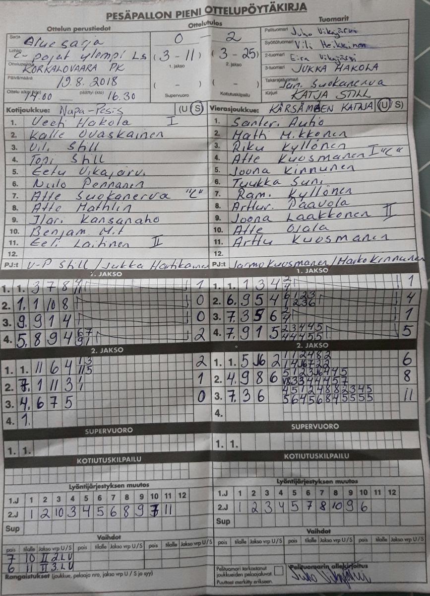 Miehet, aluesarja, Keski-Pohjanmaa C-pojat, aluesarja, Pohjois-Suomi C-pojat, Pohjois-Suomen aluemestaruussarja C-tytöt, aluesarja, Pohjois-Suomi C-tytöt, aluesarja, Keski-Pohjanmaa D-pojat, aluesarja, Pohjois-Suomi D-pojat, aluesarja, Keski-Pohjanmaa D-pojat, Pohjois-Suomen aluemestaruussarja D-tytöt, aluesarja, Pohjois-Suomi D-tytöt, aluesarja, Keski-Pohjanmaa D-tytöt, Pohjois-Suomen aluemestaruussarja E-pojat, aluesarja, Pohjois-Suomi E-pojat, aluesarja, Keski-Pohjanmaa E-pojat, Pohjois-Suomen aluemestaruussarja E-tytöt, aluesarja, Pohjois-Suomi E-tytöt, aluesarja, Keski-Pohjanmaa E-tytöt, Pohjois-Suomen aluemestaruussarja F-pojat, aluesarja, Pohjois-Suomi Naperot, aluesarja, A-kori, Keski-Pohjanmaa F-tytöt, aluesarja, Pohjois-Suomi Naperot, aluesarja, B-kori Keski-Pohjanmaa G-juniorit, aluesarja, Pohjois-Suomi Naperot, aluesarja, C-kori, Keski-Pohjanmaa Maakuntasarja miehet pohjoislohko Maakuntasarja miehet luoteislohko Maakuntasarja naiset pohjoislohko Maakuntasarja naiset luoteislohko Lady Pesis Kuntopesis - Sekasarja Kuntopesis - Miehet
