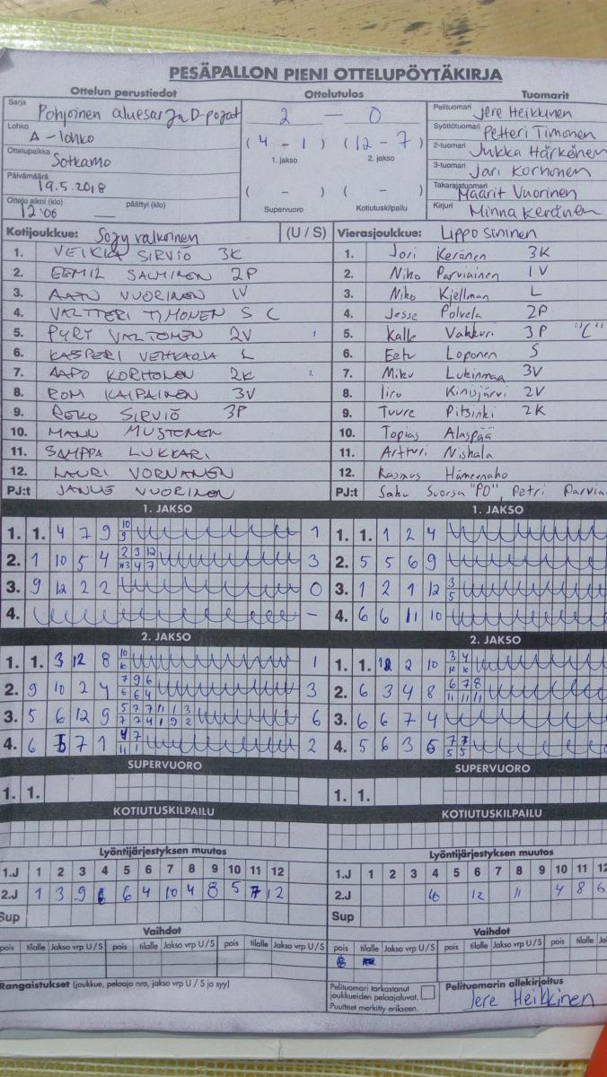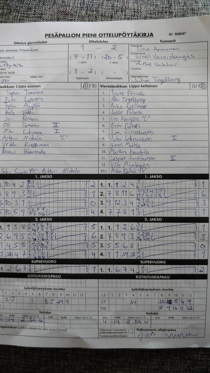 | 4. | Lippo sininen | 6 | 0 | 3 | 0 | 0 | 0 | 1 | 2 | 79 - 119 | 7 |