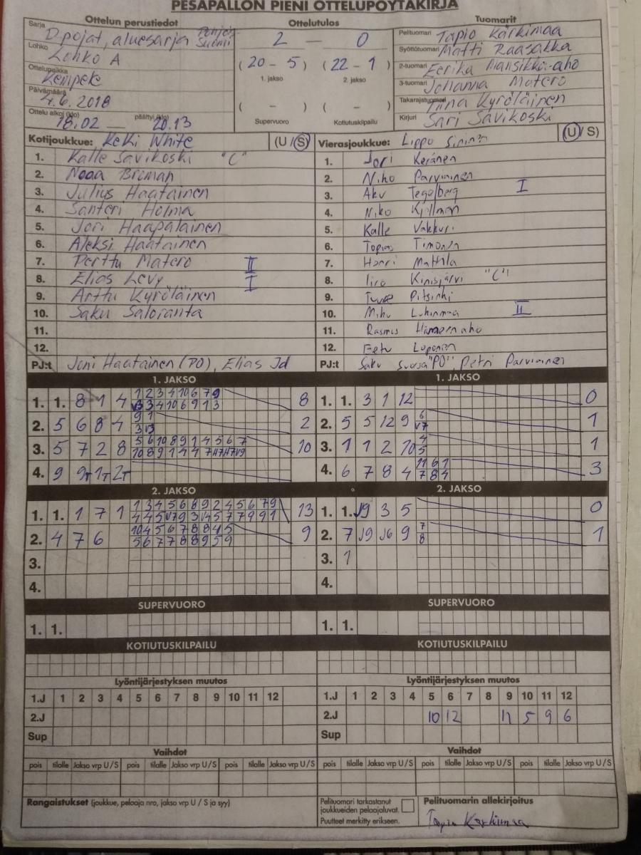 | 1. | SoJy valkoinen | 6 | 5 | 0 | 0 | 0 | 0 | 1 | 0 | 139 - 55 | 16 |
