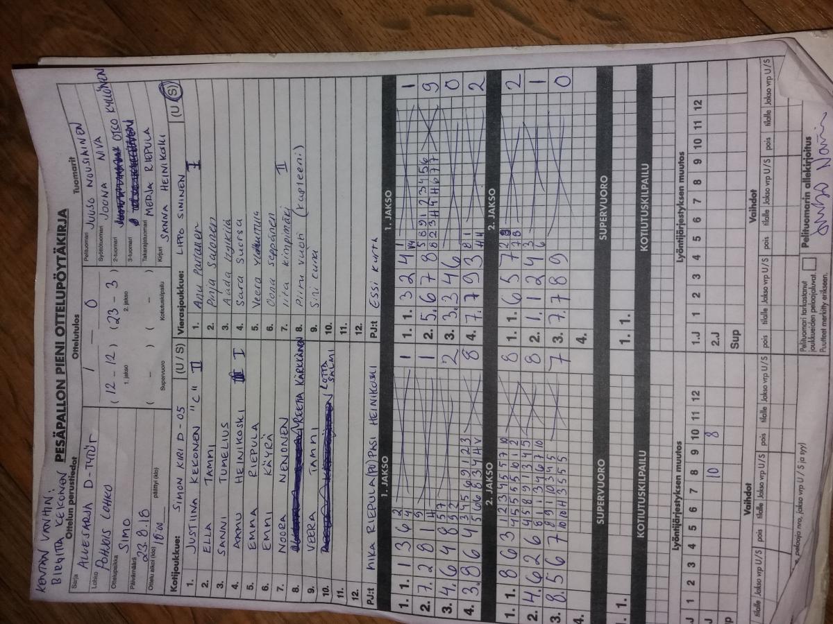 Miehet, aluesarja, Keski-Pohjanmaa C-pojat, aluesarja, Pohjois-Suomi C-pojat, Pohjois-Suomen aluemestaruussarja C-tytöt, aluesarja, Pohjois-Suomi C-tytöt, aluesarja, Keski-Pohjanmaa D-pojat, aluesarja, Pohjois-Suomi D-pojat, aluesarja, Keski-Pohjanmaa D-pojat, Pohjois-Suomen aluemestaruussarja D-tytöt, aluesarja, Pohjois-Suomi D-tytöt, aluesarja, Keski-Pohjanmaa D-tytöt, Pohjois-Suomen aluemestaruussarja E-pojat, aluesarja, Pohjois-Suomi E-pojat, aluesarja, Keski-Pohjanmaa E-pojat, Pohjois-Suomen aluemestaruussarja E-tytöt, aluesarja, Pohjois-Suomi E-tytöt, aluesarja, Keski-Pohjanmaa E-tytöt, Pohjois-Suomen aluemestaruussarja F-pojat, aluesarja, Pohjois-Suomi Naperot, aluesarja, A-kori, Keski-Pohjanmaa F-tytöt, aluesarja, Pohjois-Suomi Naperot, aluesarja, B-kori Keski-Pohjanmaa G-juniorit, aluesarja, Pohjois-Suomi Naperot, aluesarja, C-kori, Keski-Pohjanmaa Maakuntasarja miehet pohjoislohko Maakuntasarja miehet luoteislohko Maakuntasarja naiset pohjoislohko Maakuntasarja naiset luoteislohko Lady Pesis Kuntopesis - Sekasarja Kuntopesis - Miehet