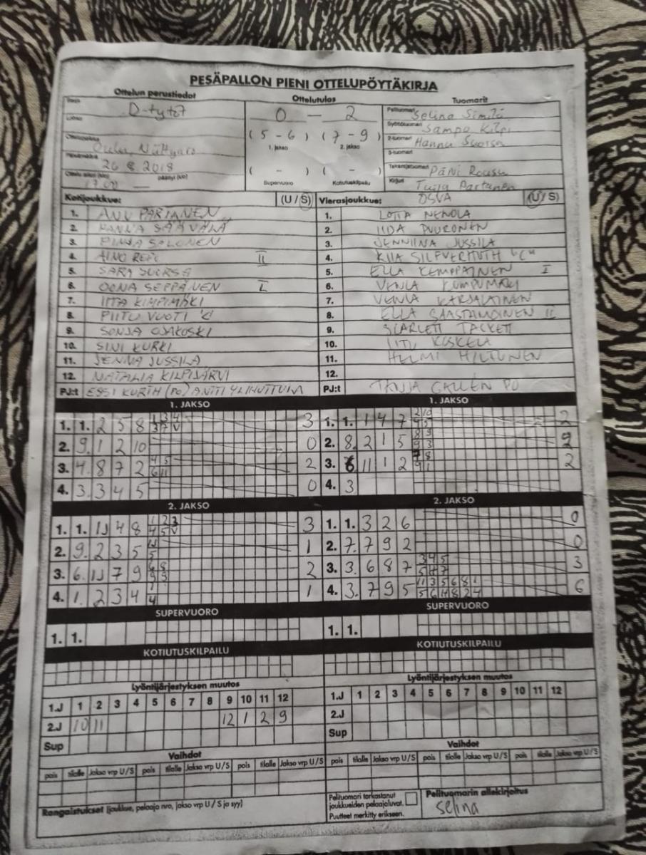 | 570501 | 9.8.2018 | Lippo Sininen | PattU D05-tytöt | 0-2 (5-10, 16-19) | näytä |