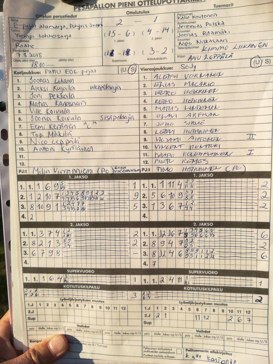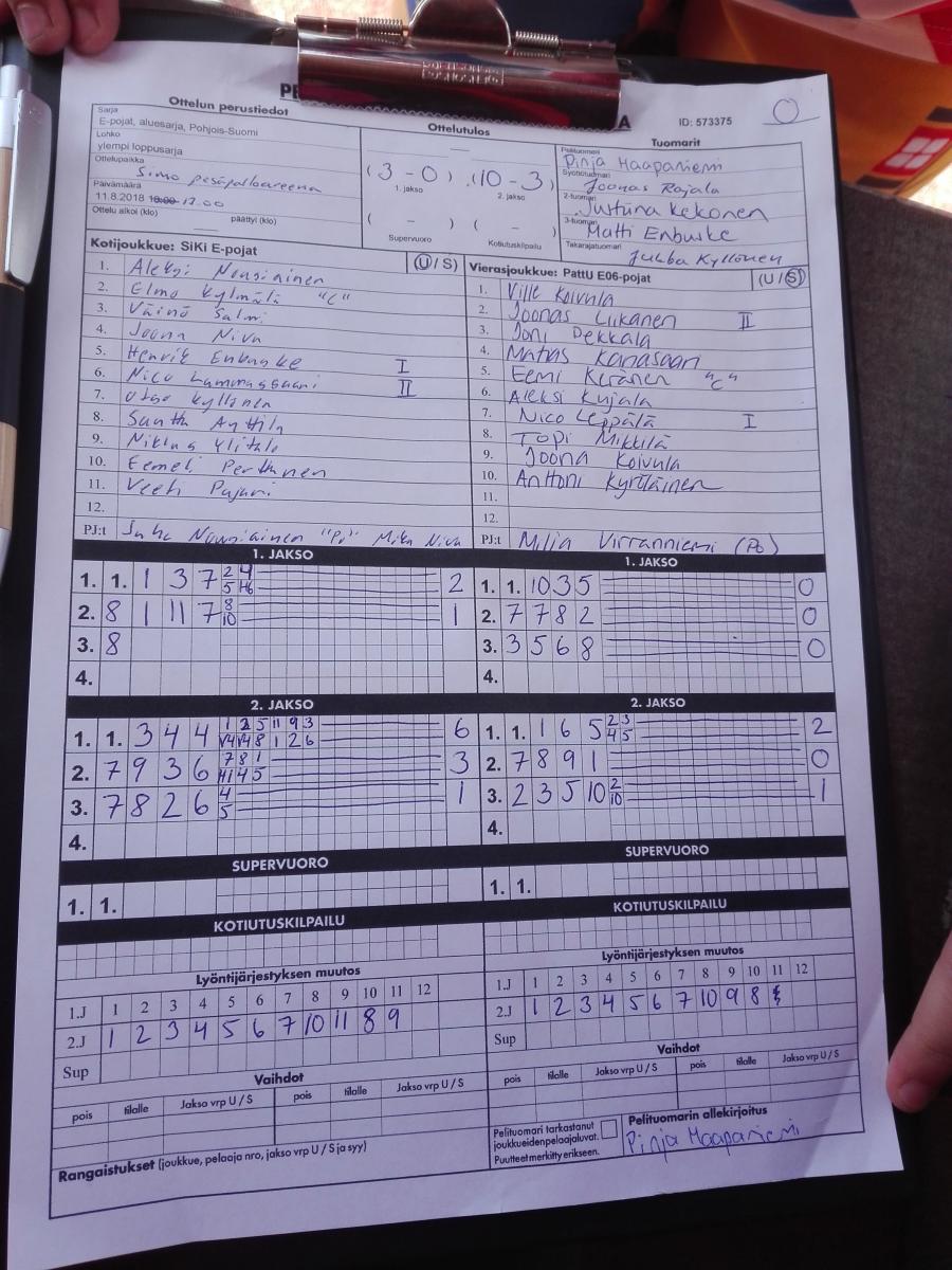 | 4. | PattU E06-pojat | 7 | 2 | 2 | 0 | 0 | 0 | 1 | 2 | 104 - 107 | 11 |