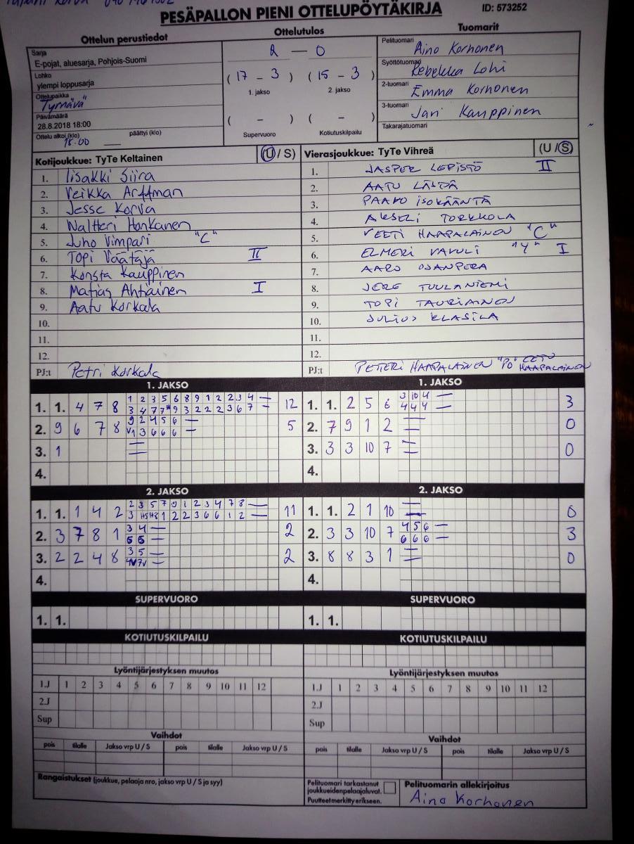 | 6. | TyTe Keltainen | 7 | 2 | 1 | 0 | 0 | 0 | 2 | 2 | 118 - 105 | 10 |
