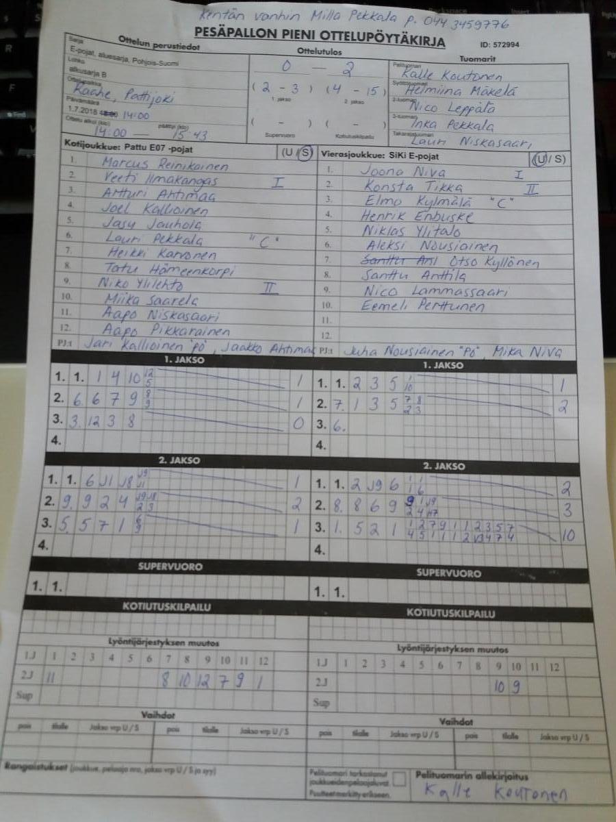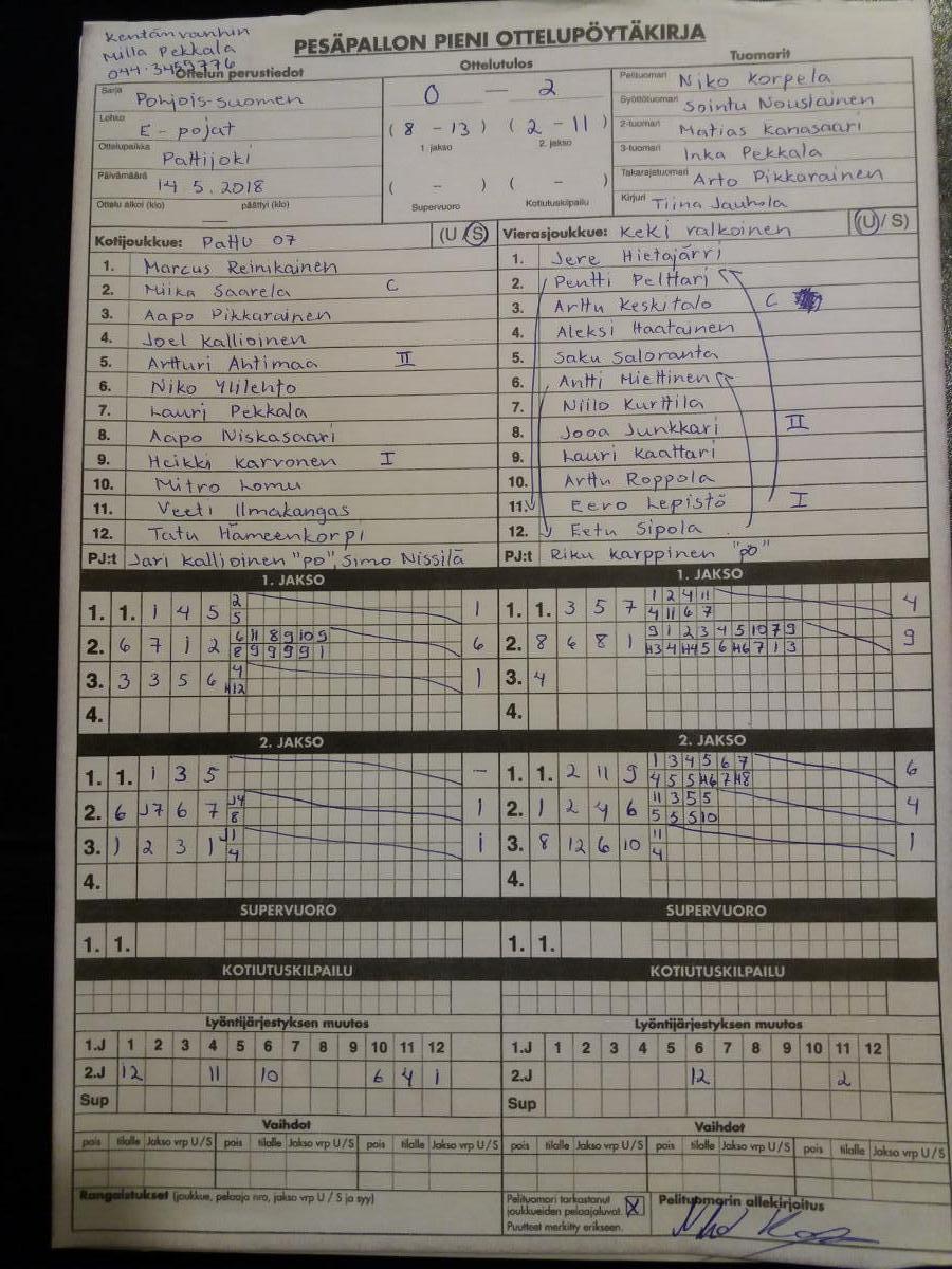 | 6. | Pattu E07 -pojat | 6 | 1 | 2 | 0 | 0 | 1 | 0 | 2 | 92 - 81 | 7 |