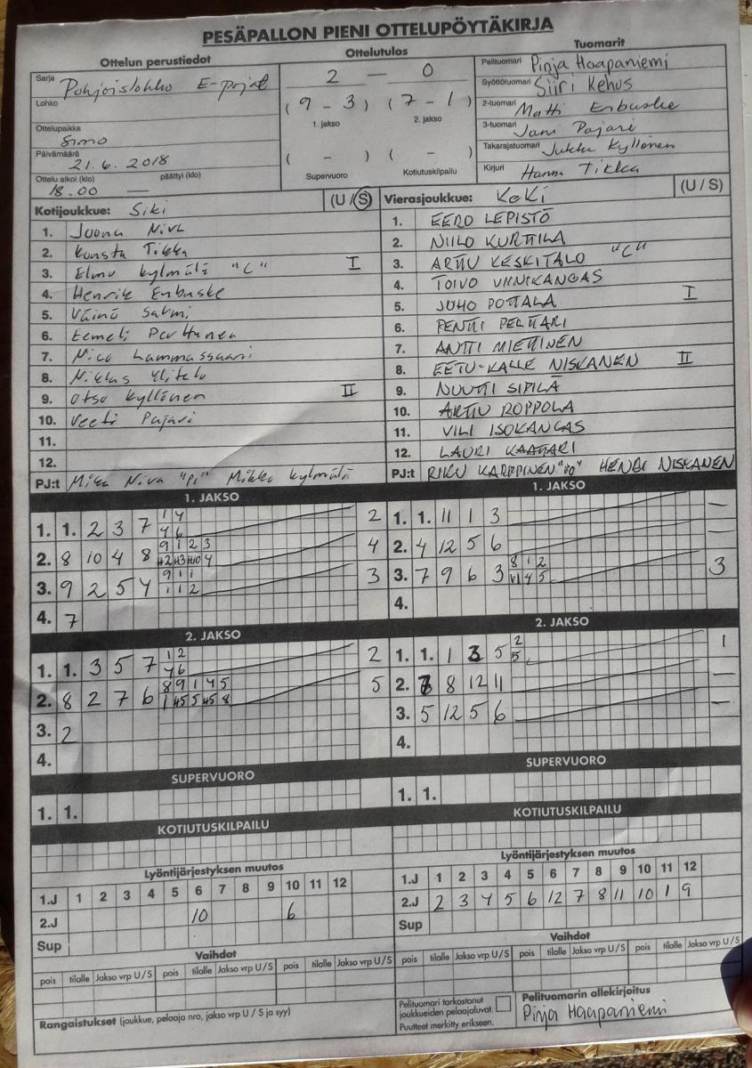 | 7. | Keki valkoinen | 6 | 1 | 1 | 0 | 0 | 0 | 1 | 3 | 73 - 134 | 6 |