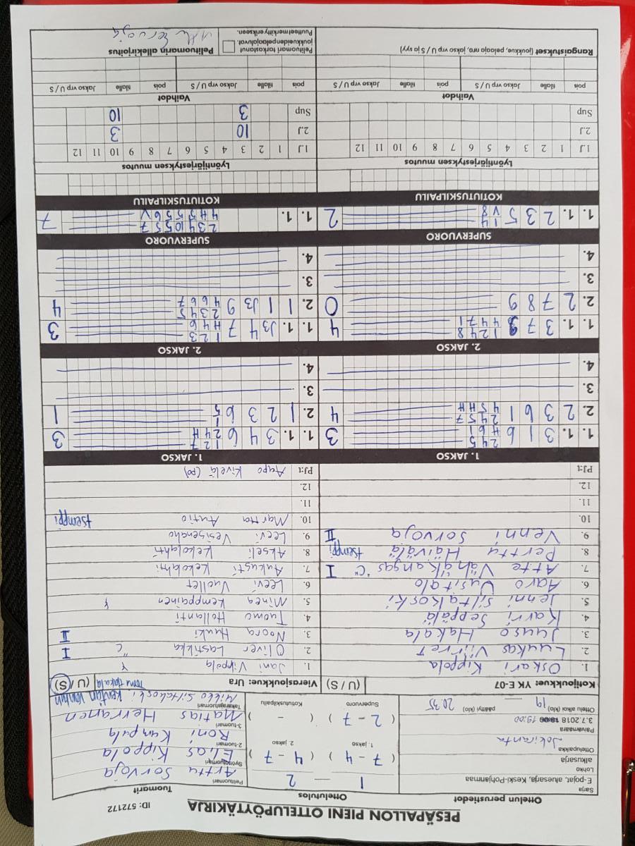 | alkusarja | ylempi loppusarja | alempi loppusarja | alkusarjaalkusarja