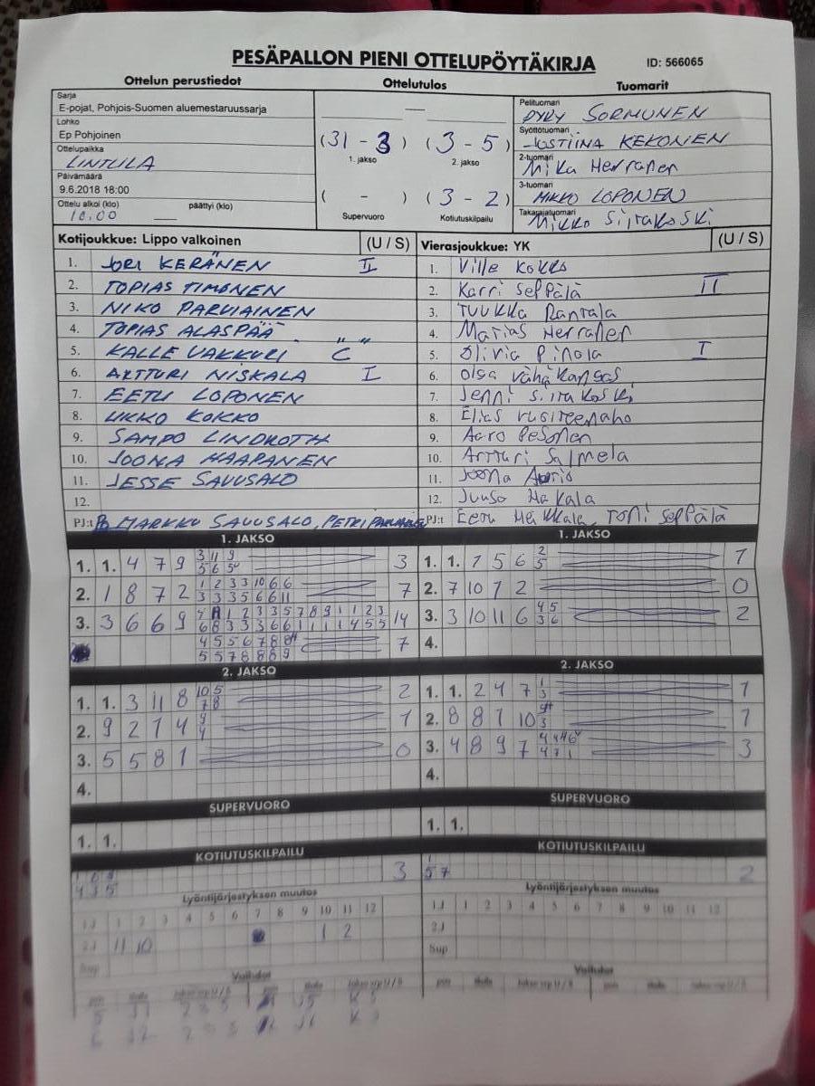 | 566065 | 9.6.2018 | Lippo valkoinen | YK | 2-1 (23-3, 3-5, 0-0, 3-2) | näytä |