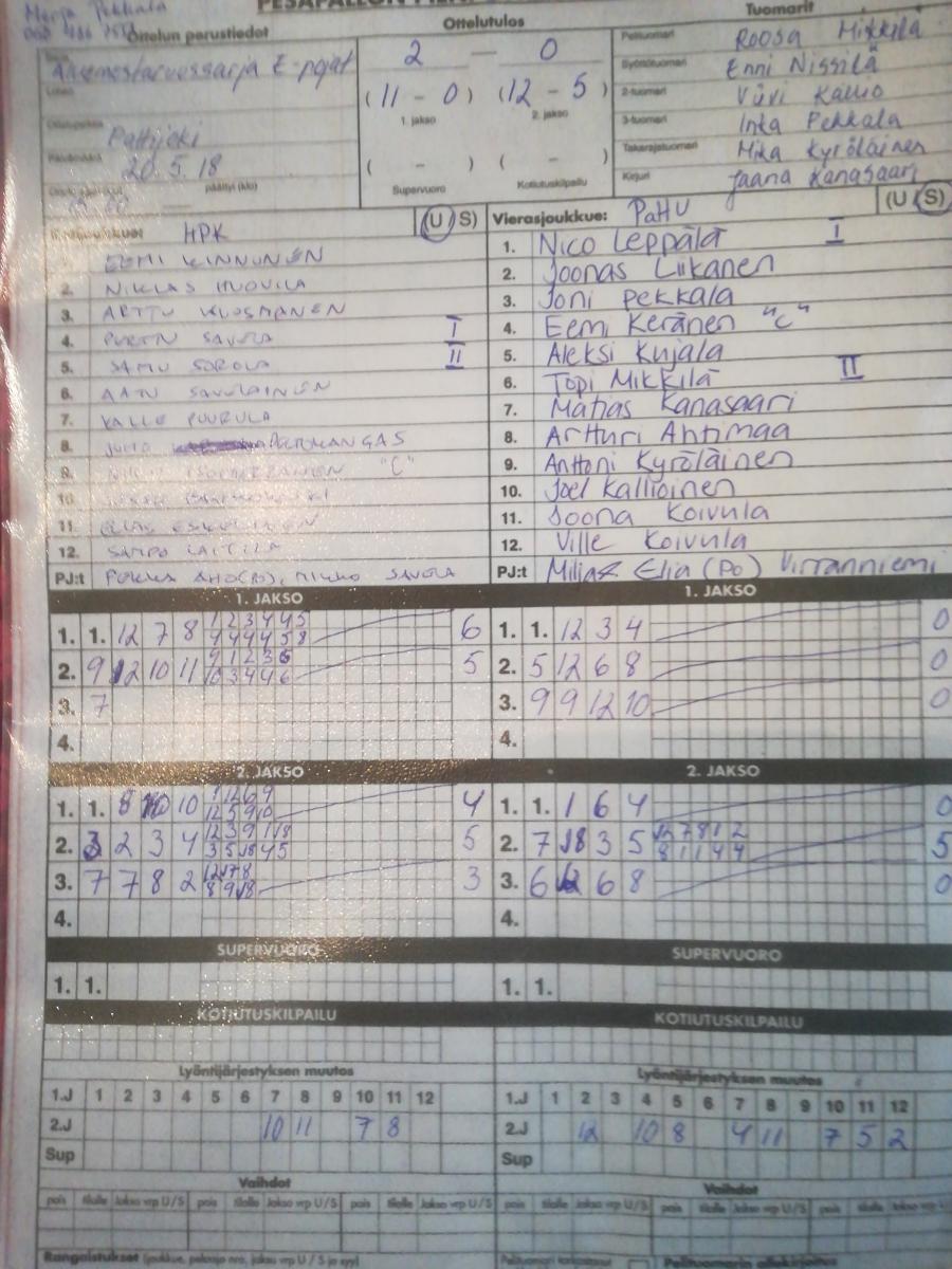 | 566078 | 20.5.2018 | HP-K 1 | PattU E-pojat | 2-0 (11-0, 12-5) | näytä |
