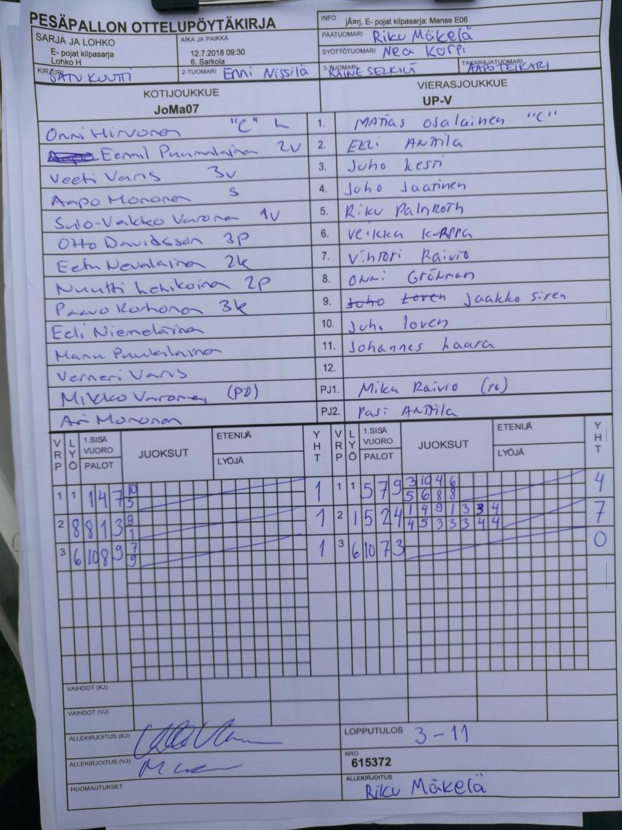 | # | Joukkue | O | V | T | H | JUOKSUT | P |