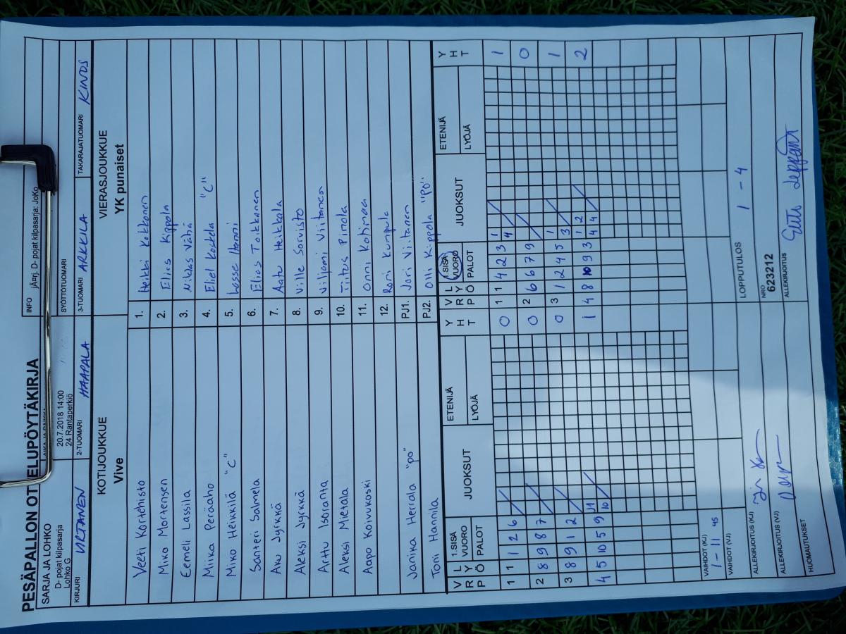 | 3. | YK punaiset | 3 | 1 | 1 | 1 | 10 - 14 | 3 |