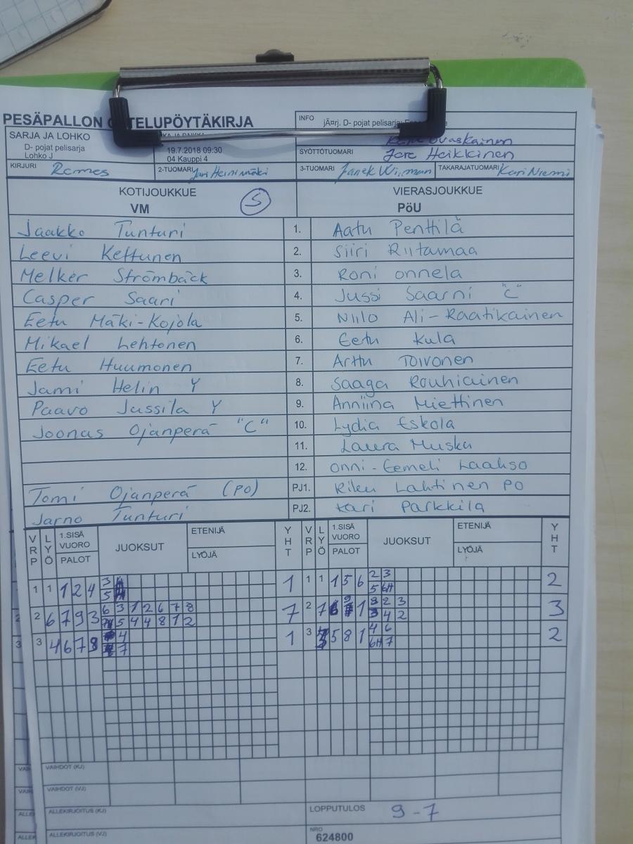 | # | Joukkue | O | V | T | H | JUOKSUT | P |