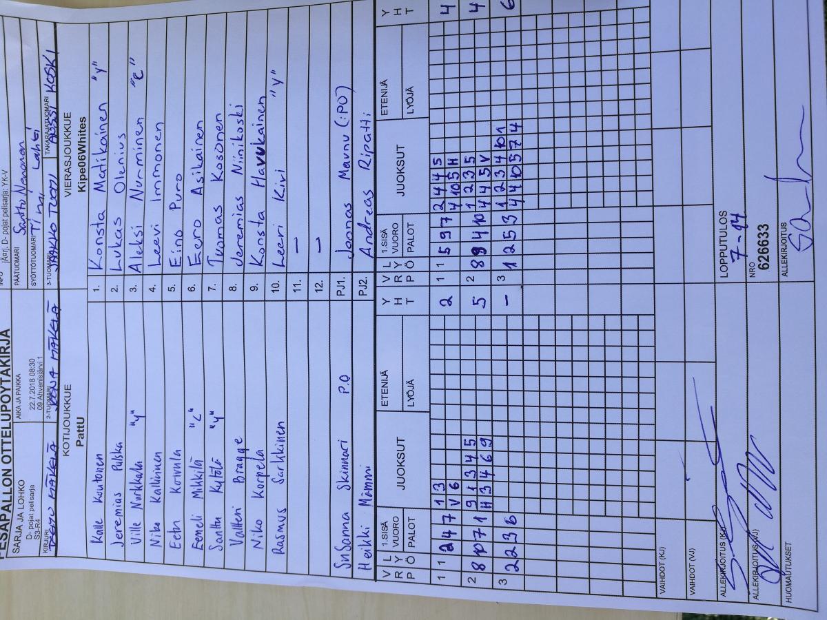 | 626633 | 22.7.2018 08:30 | 09 Ahvenisjärvi 1 | PattU | Kipe06Whites | 7-14 | D- pojat pelisarja: YK-V | näytä |