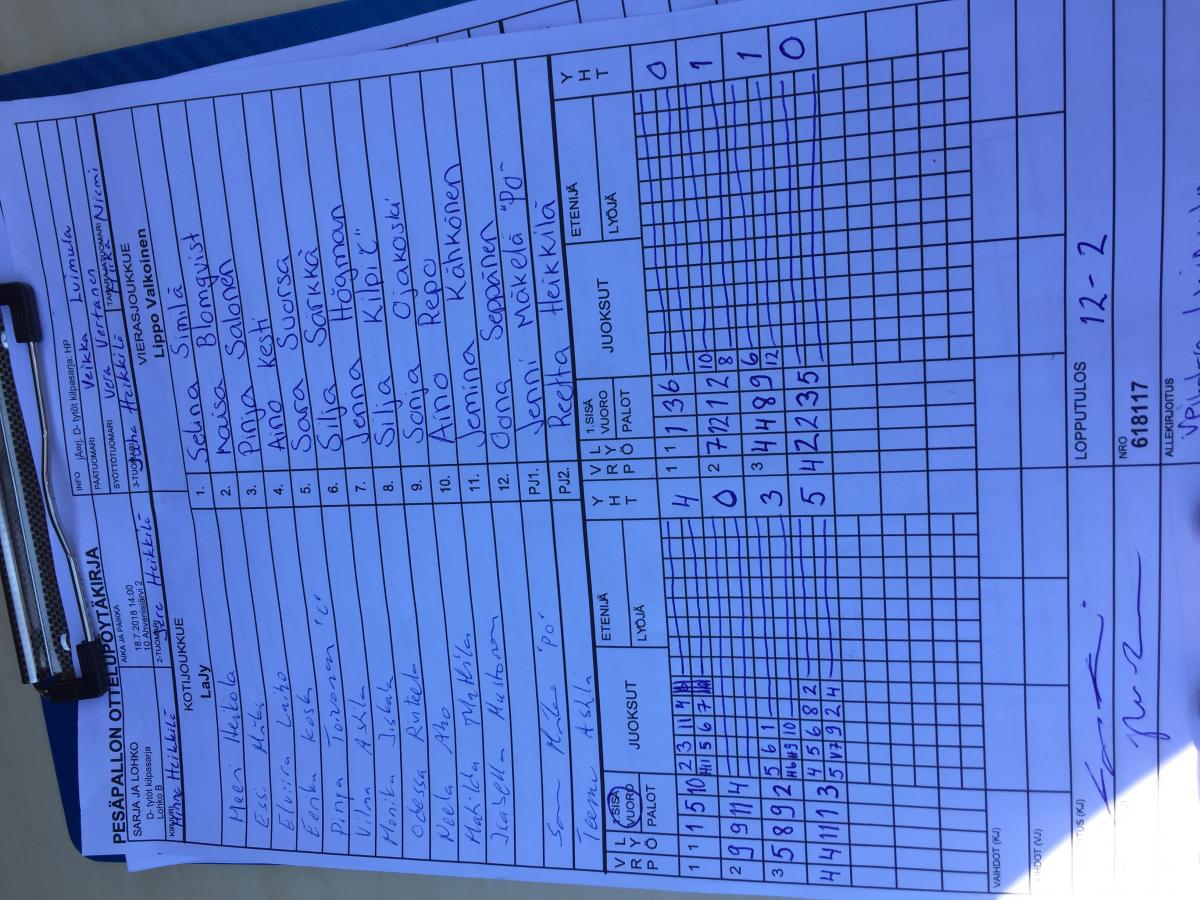 | 5. | Lippo Valkoinen | 5 | 2 | 0 | 3 | 31 - 48 | 4 |