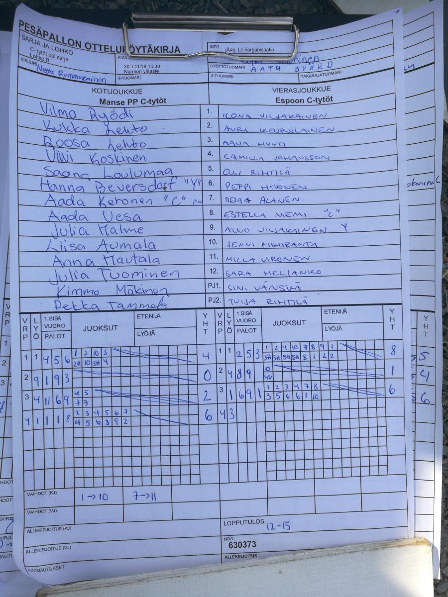 | 7. | Manse PP C-tytöt | 6 | 0 | 0 | 6 | 51 - 107 | 0 |