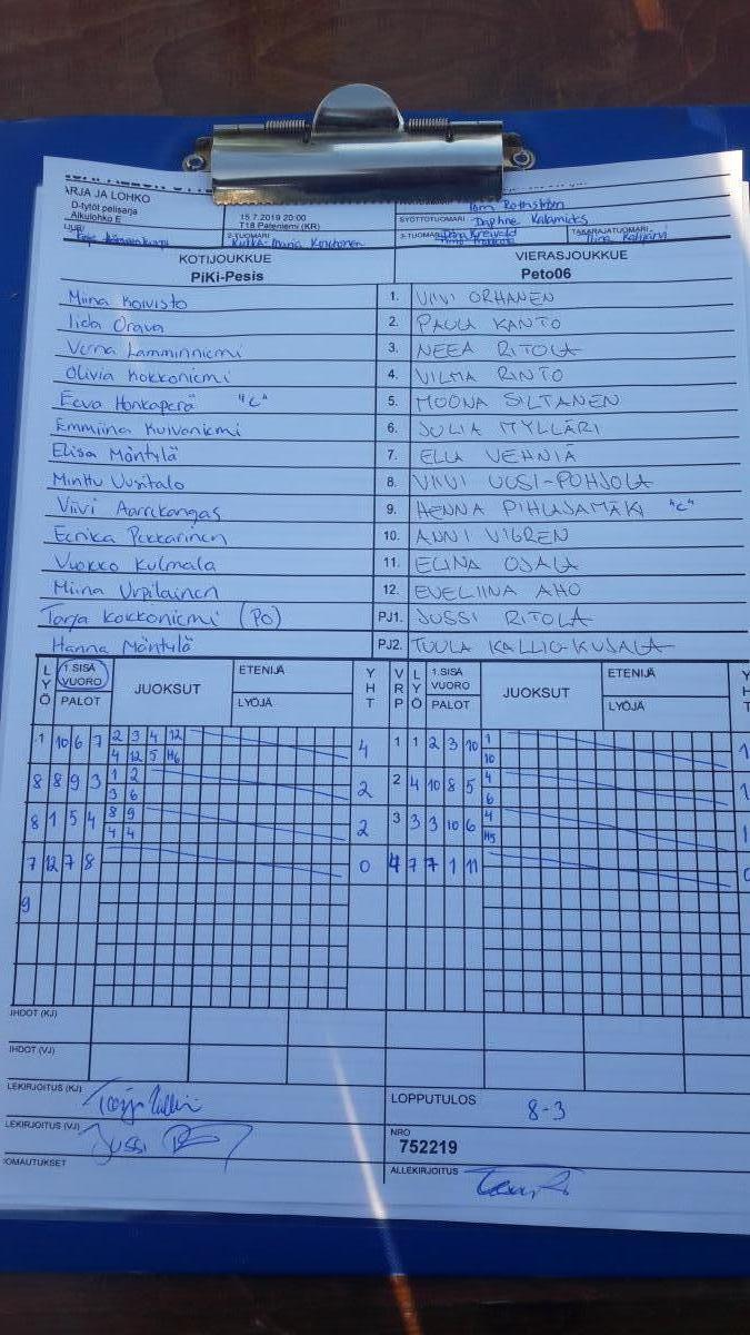 | 2. | PiKi-Pesis | 4 | 3 | 0 | 1 | 58 - 16 | 6 |