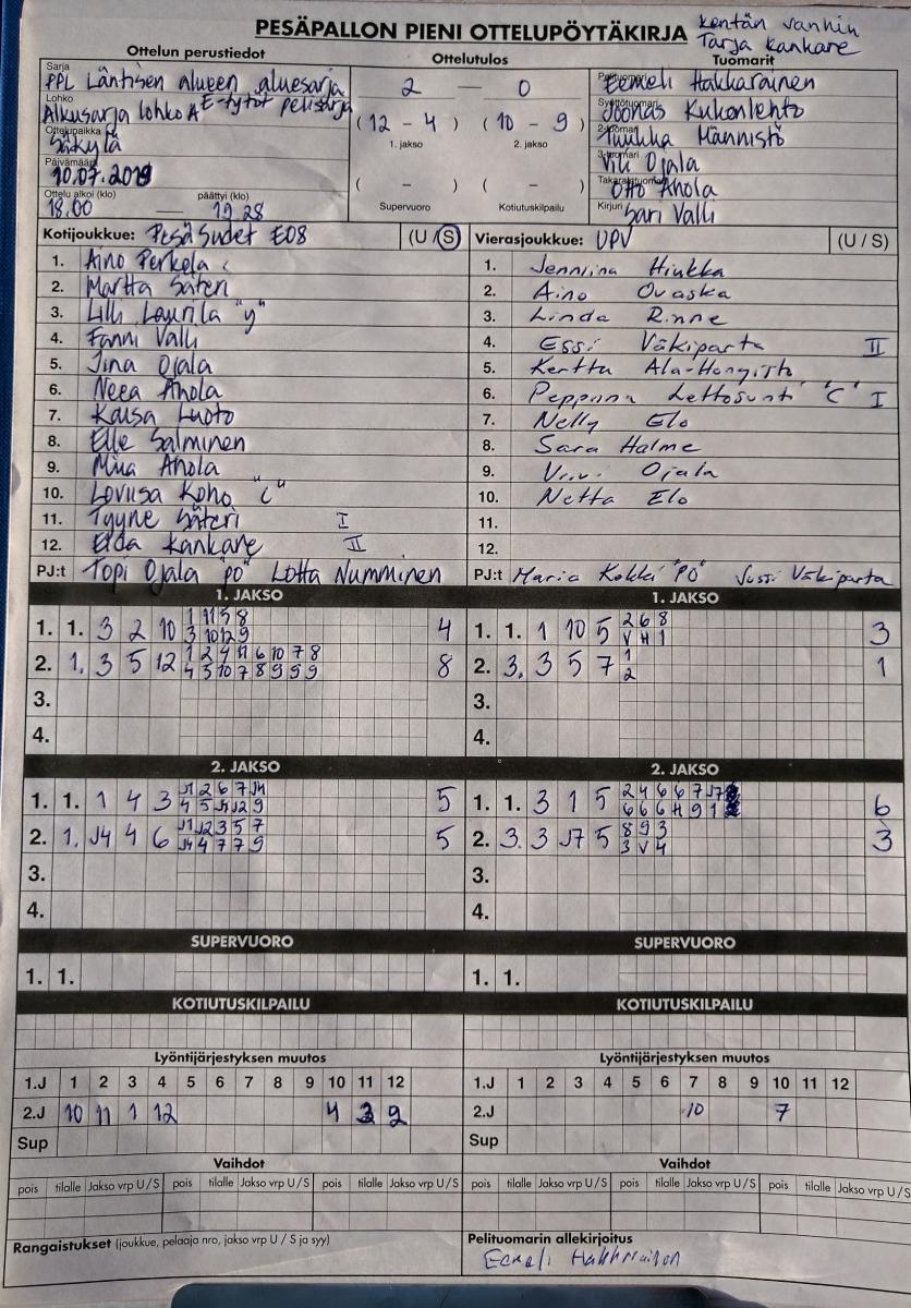 Miesten piirisarja C-tytöt aluesarja C-pojat aluesarja D-tytöt kilpasarja D-tytöt pelisarja D-pojat kilpasarja D-pojat pelisarja E-tytöt kilpasarja E-tytöt pelisarja E-pojat kilpasarja E-pojat pelisarja F-tytöt aluesarja Pohjanmaa F-tytöt aluesarja Satakunta F-pojat aluesarja Pohjanmaa F-pojat aluesarja Satakunta G-tytöt aluesarja Pohjanmaa G-tytöt aluesarja Satakunta G-pojat aluesarja Pohjanmaa G-pojat aluesarja Satakunta G-pienpelisarja Pohjanmaa G-pienpelisarja Satakunta LadyPesis Pohjanmaa LadyPesis turnaus Pori