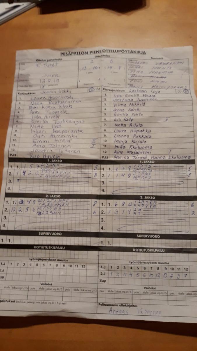 | 767259 | 17.8.2019 12:00* | Jurvan liekki | Pesäkarhut F09-tytöt | 0-2 (10-15, 9-14) | näytä |