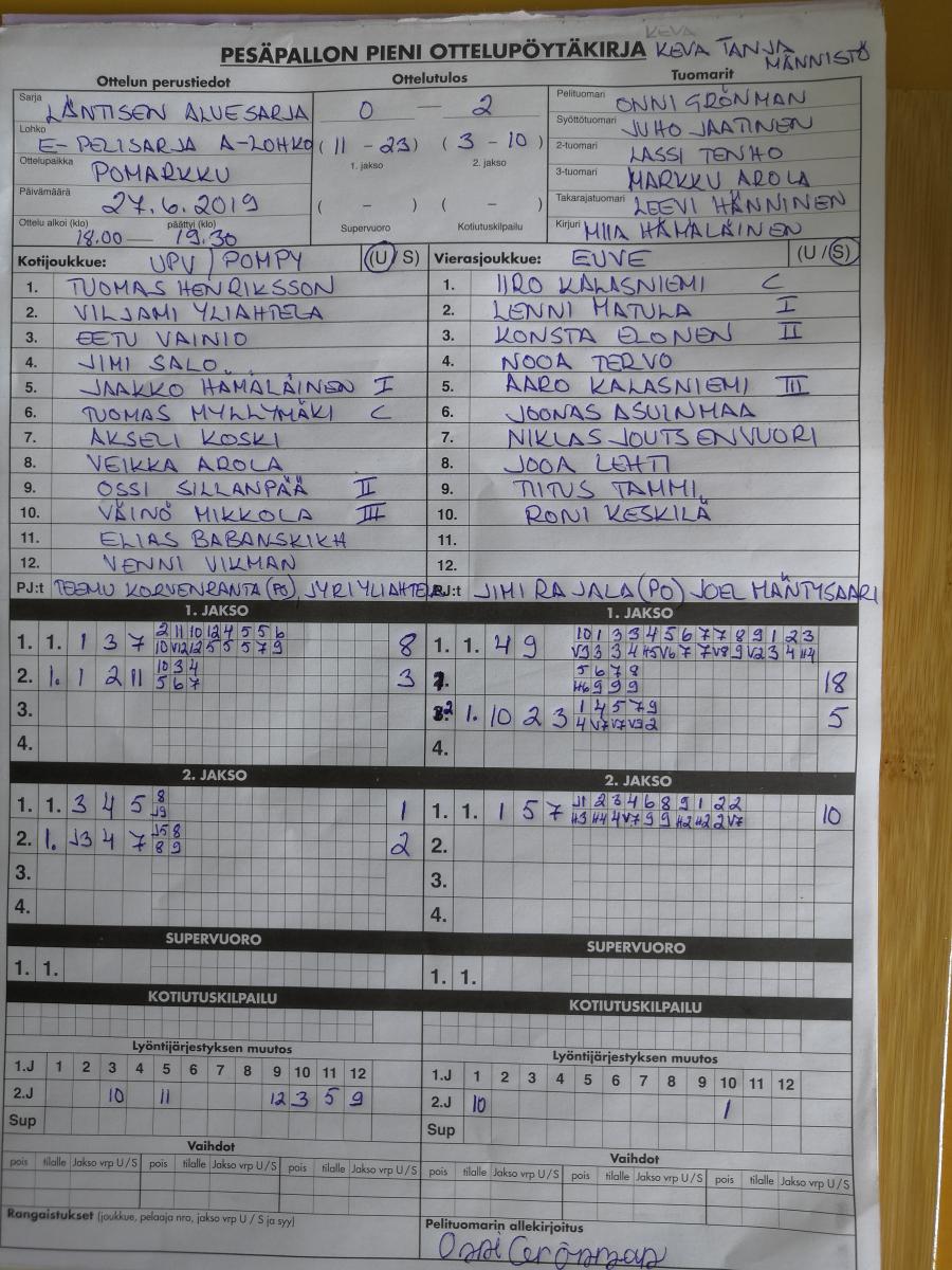 Miesten piirisarja C-tytöt aluesarja C-pojat aluesarja D-tytöt kilpasarja D-tytöt pelisarja D-pojat kilpasarja D-pojat pelisarja E-tytöt kilpasarja E-tytöt pelisarja E-pojat kilpasarja E-pojat pelisarja F-tytöt aluesarja Pohjanmaa F-tytöt aluesarja Satakunta F-pojat aluesarja Pohjanmaa F-pojat aluesarja Satakunta G-tytöt aluesarja Pohjanmaa G-tytöt aluesarja Satakunta G-pojat aluesarja Pohjanmaa G-pojat aluesarja Satakunta G-pienpelisarja Pohjanmaa G-pienpelisarja Satakunta LadyPesis Pohjanmaa LadyPesis turnaus Pori