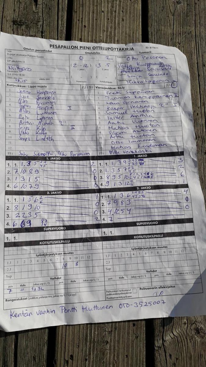 | 677637 | 19.6.2019 | Ei joukkuetta | Haapajärvi | 0-2 (1-5, 0-20) | näytä |