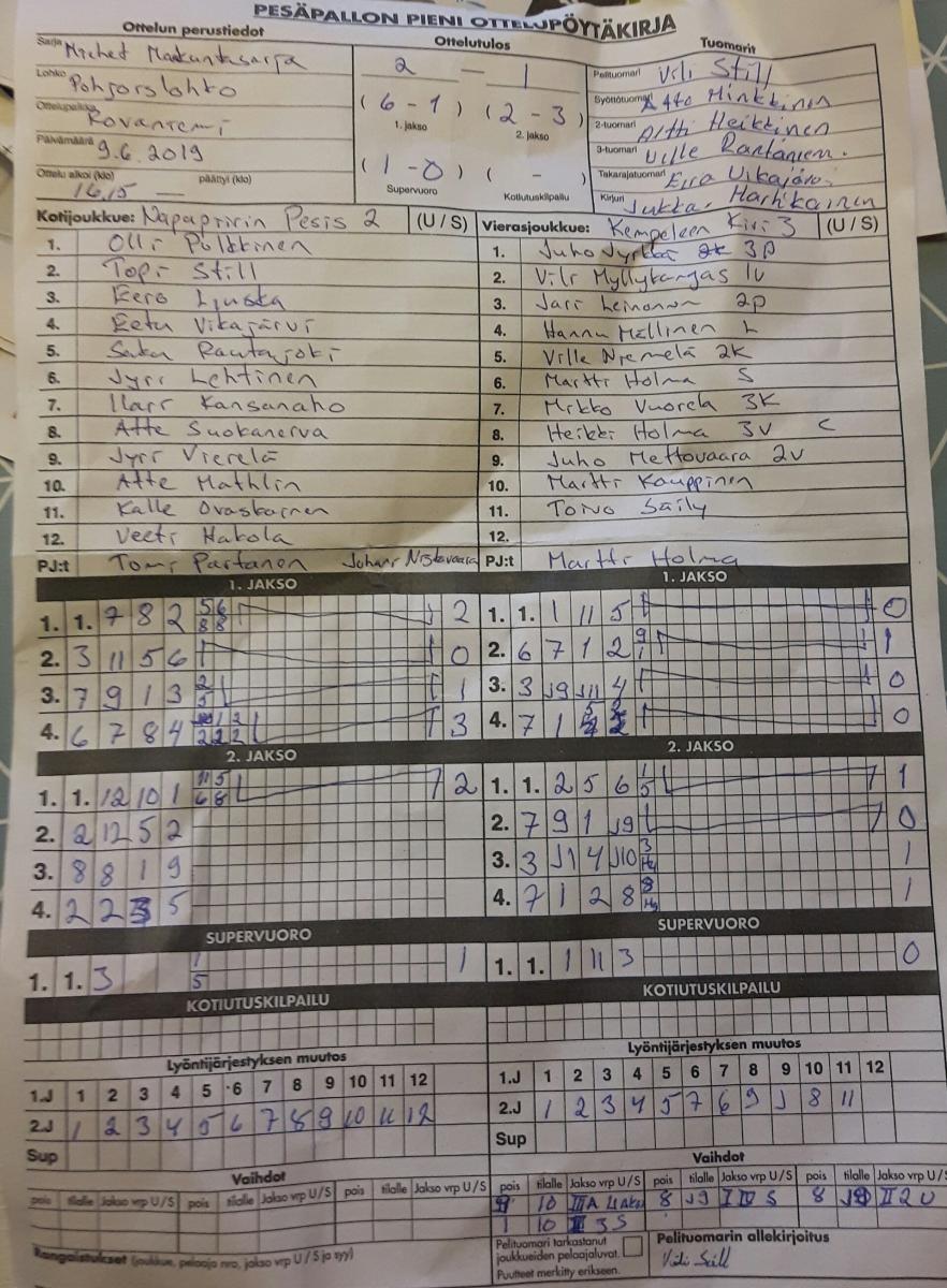 | 669894 | 31.8.2019 | Napa Pesis | SiKi | 2-1 (10-1, 3-9, 2-1) | näytä |