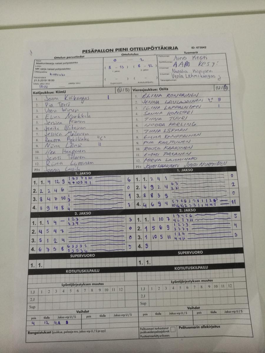 | 673000 | 27.8.2019 | KiimU | PattU | 2-0 (15-3, 17-7) | näytä |
