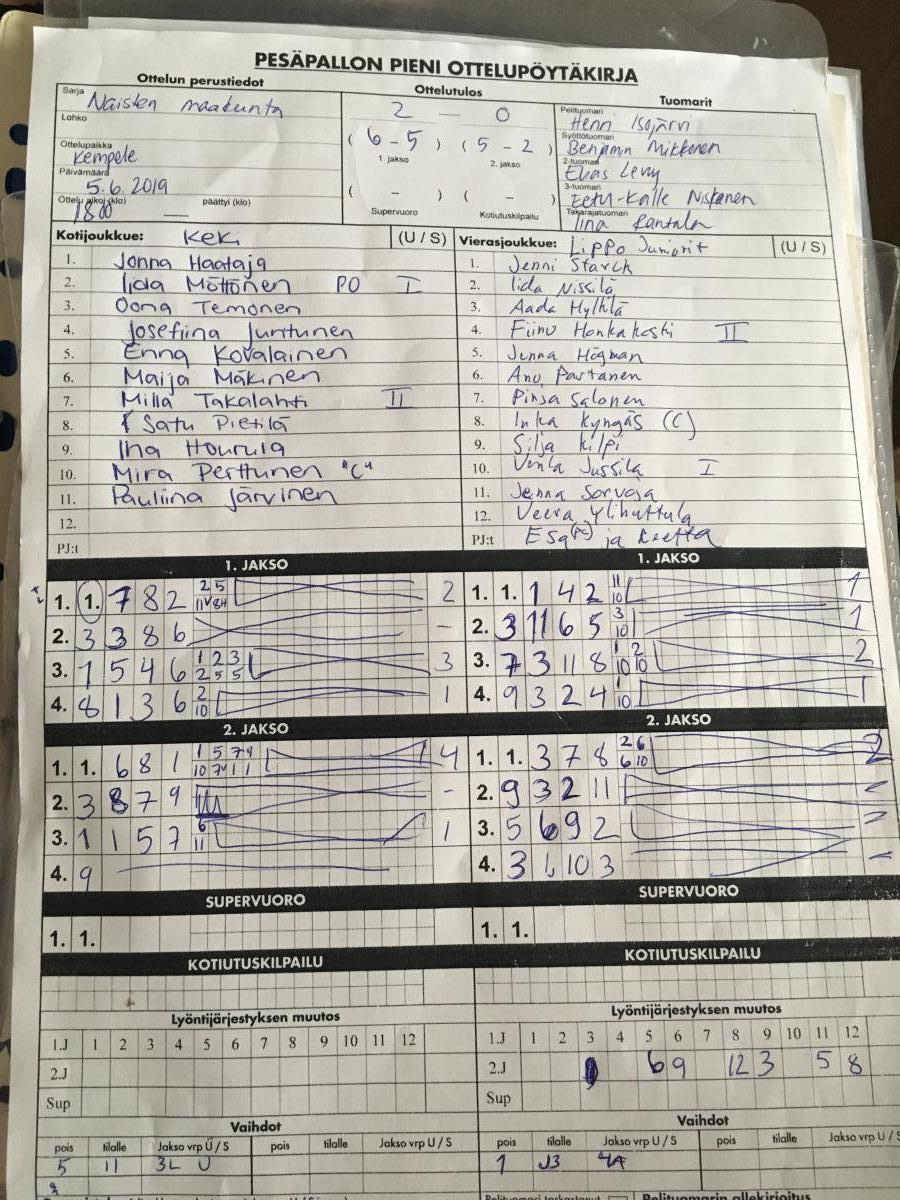 | 672946 | 18.6.2019 | Lippo jun | SiKi | 0-2 (1-22, 1-22) | näytä |