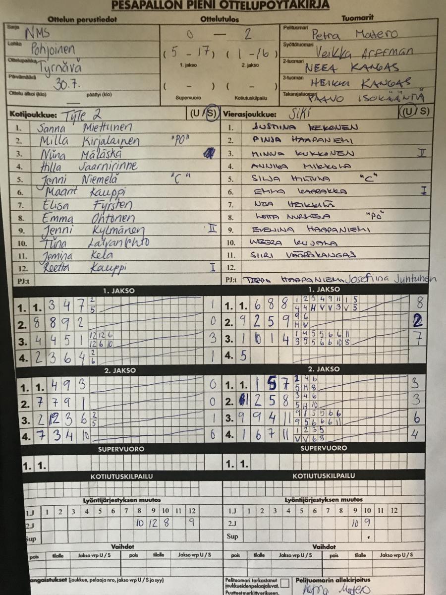 | 672991 | 2.7.2019 | Lippo jun | PattU | 0-2 (3-11, 2-3) | näytä |