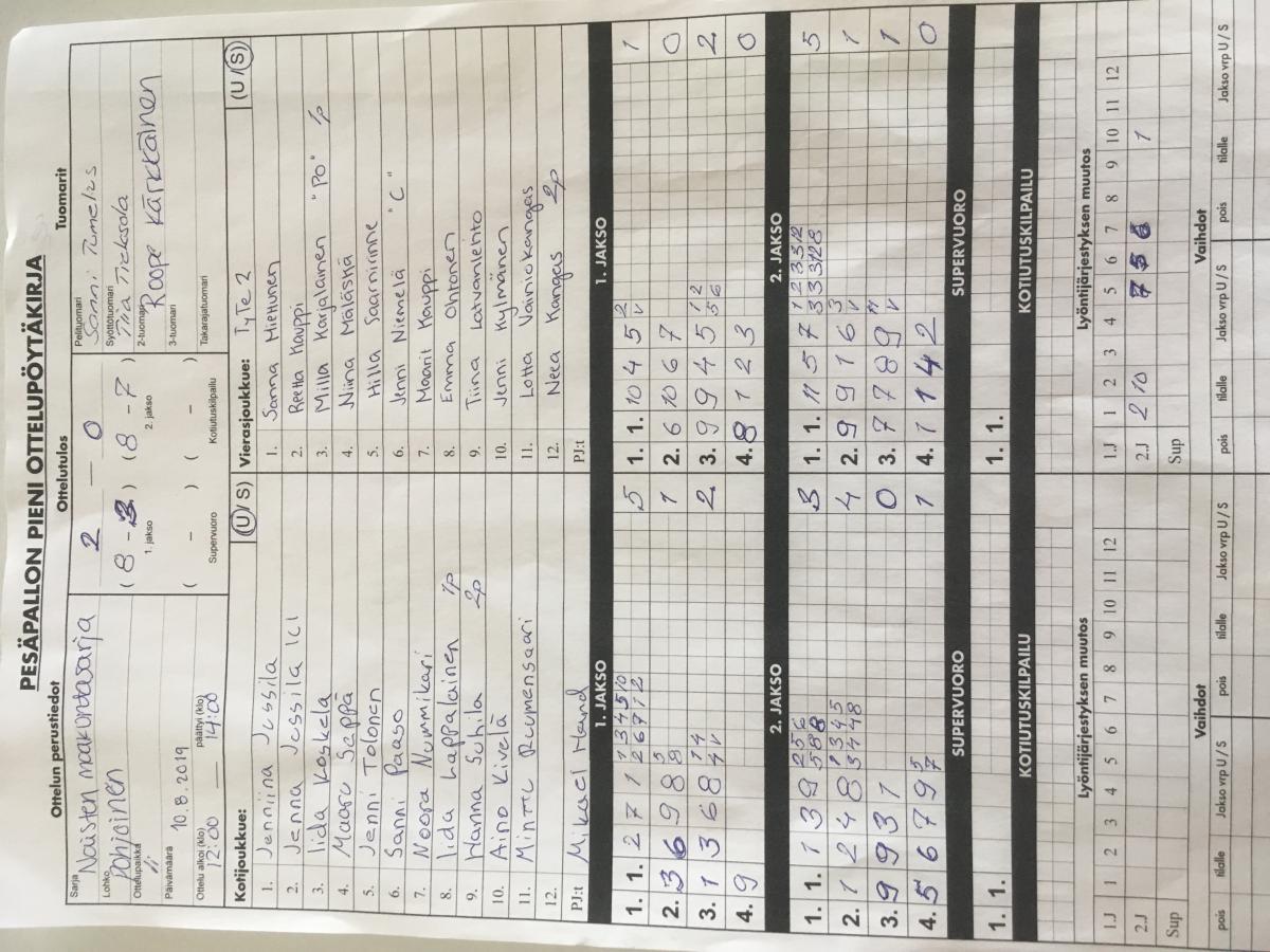 | 673178 | 17.8.2019 | Lippo jun | TyTe 2 | 1-2 (16-8, 9-10, 6-7) | näytä |