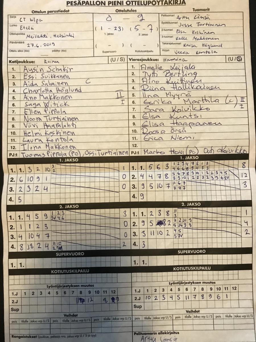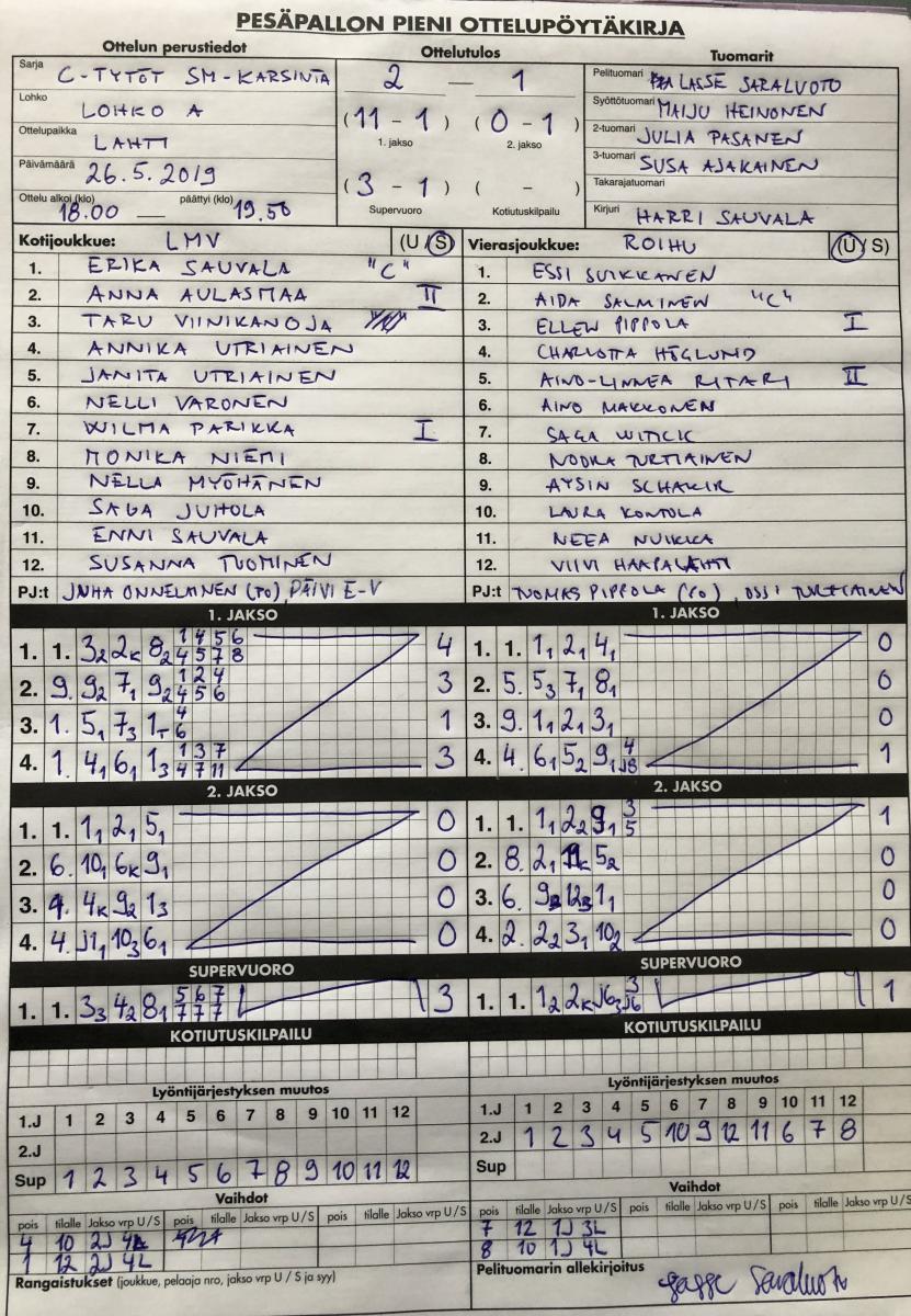 | 700973 | 9.5.2019 18:00 | Roihu | Espoon Pesis | 2-0 (15-6, 8-2) | näytä |