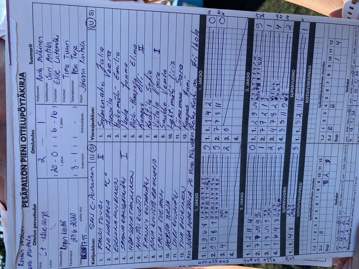 | 777634 | 18.8.2020 18:00* | Mailattaret | SMJ valkoinen | 1-2 (10-16, 12-11, 0-5) | näytä |