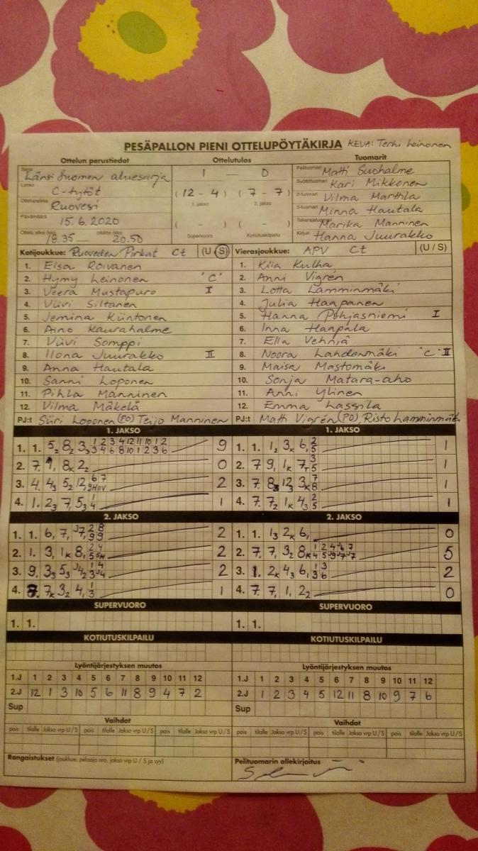 | 777809 | 19.7.2020 13:00* | Ruoveden Pirkat C | YPJ C-tytöt | 1-2 (5-12, 14-13, 1-4) | näytä |