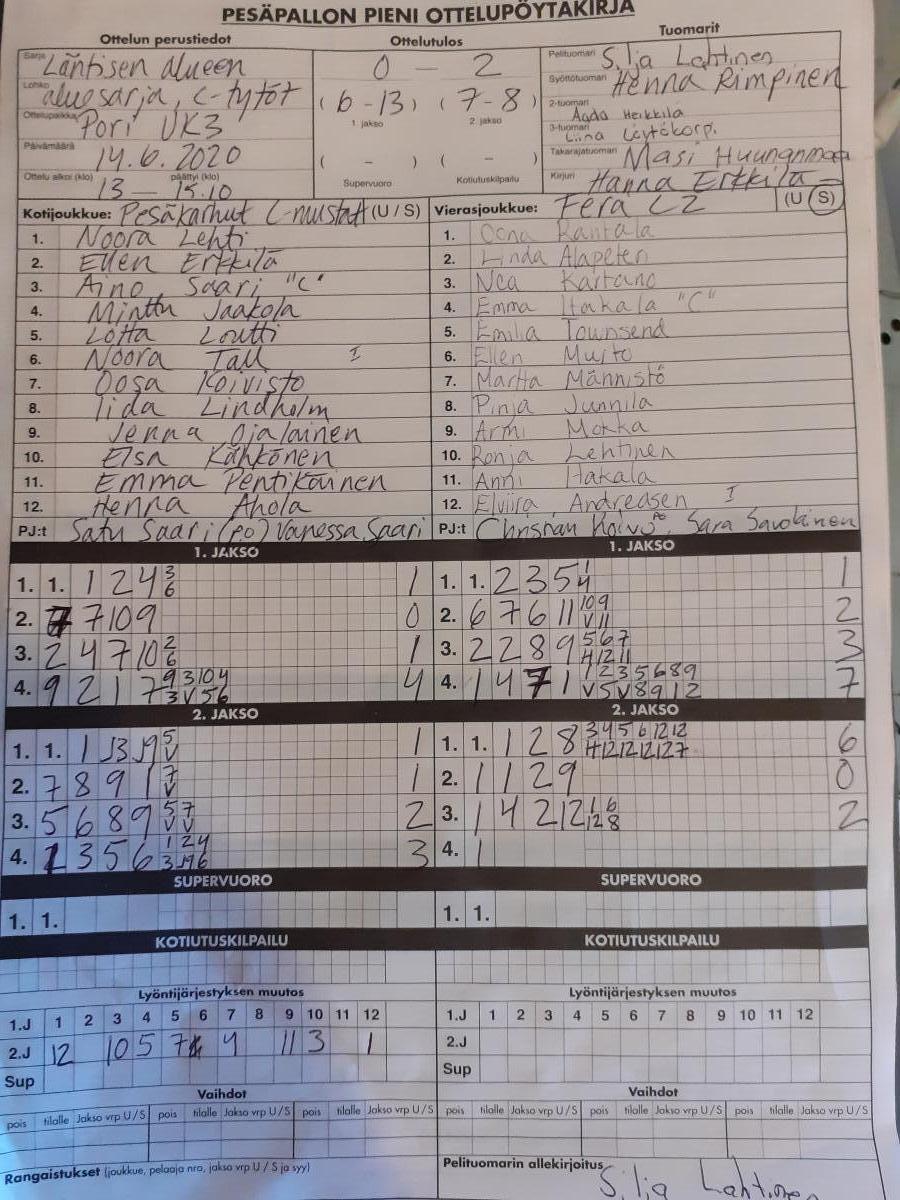 | 777854 | 14.6.2020 13:00* | Pesäkarhut C-Mustat | Fera C2 | 0-2 (6-13, 7-8) | näytä |
