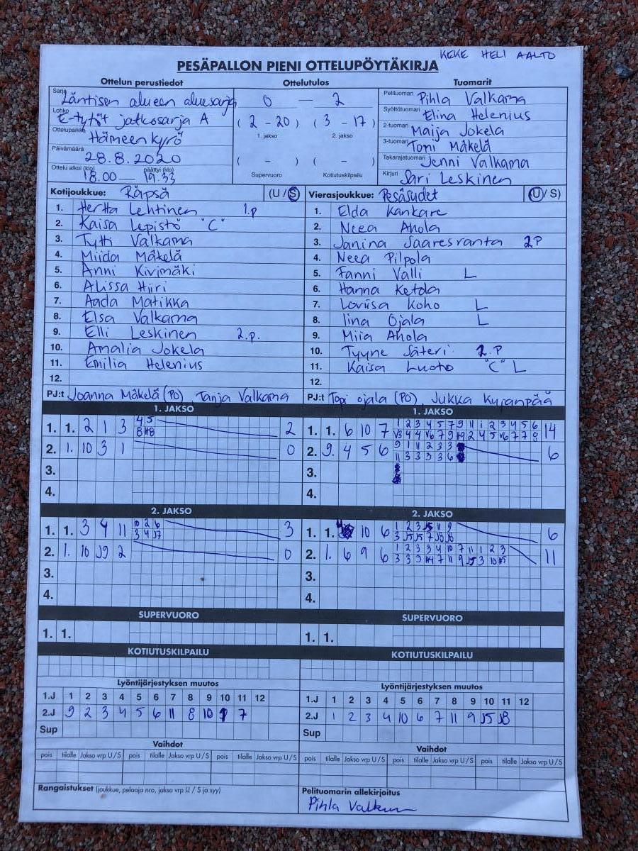 | 851835 | 26.8.2020 18:00* | Räpsä E-tytöt | MJ | 0-2 (1-8, 9-15) | näytä |