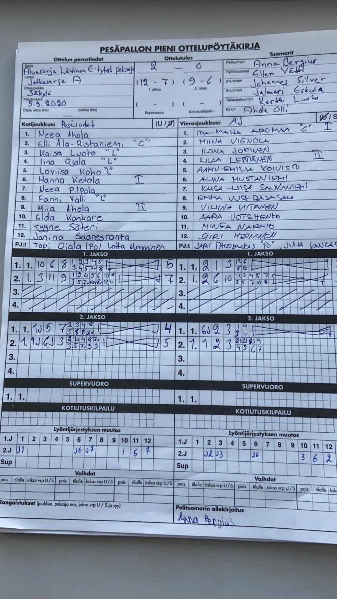 | 851893 | 5.9.2020 12:00* | Pesäsudet E08 | MJ | 2-0 (12-7, 9-6) | näytä |