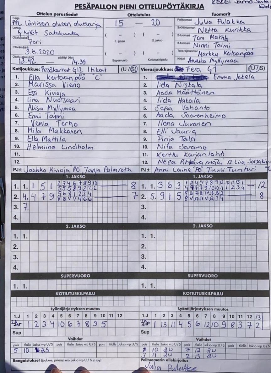 | 849481 | 9.8.2020 11:15 | Pesäkarhut G13 -tytöt | Pesäkarhut Itikat | 6-14 | näytä |