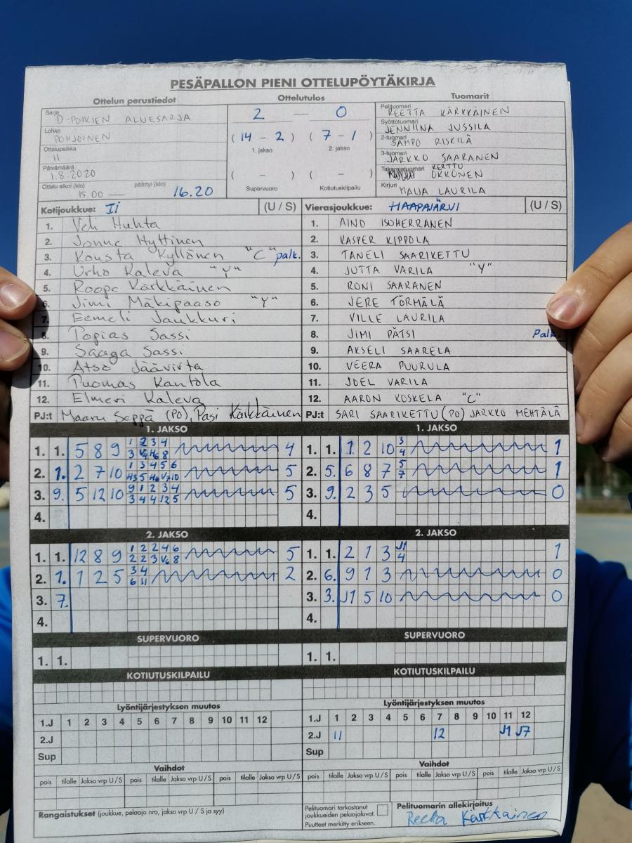 | 836591 | 1.8.2020 | IiU | Haapajärvi | 2-0 (14-2, 7-1) | näytä |
