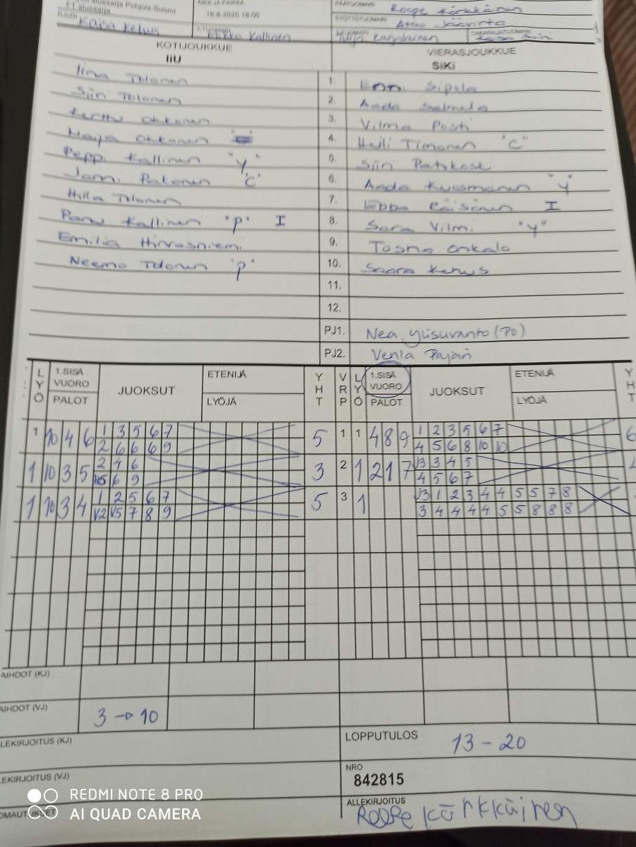 | 842815 | 16.8.2020 | IiU | SiKi | 13-20 | näytä |