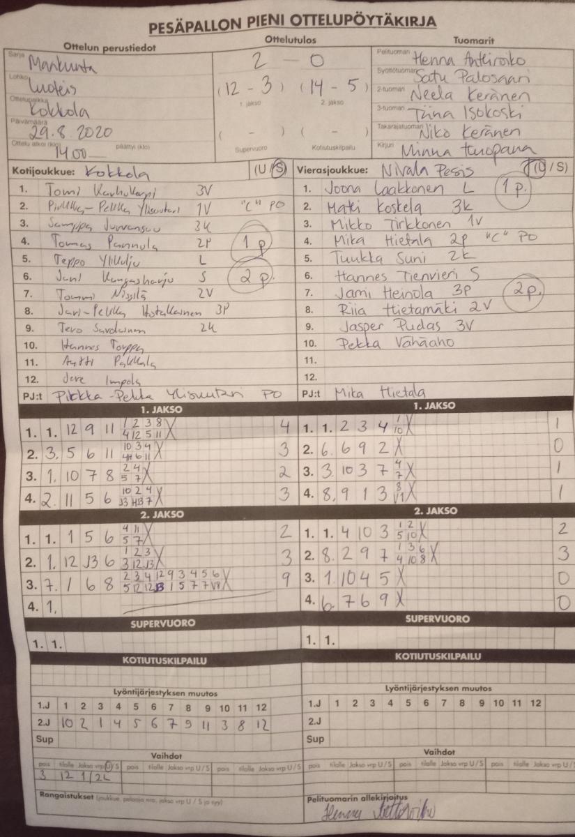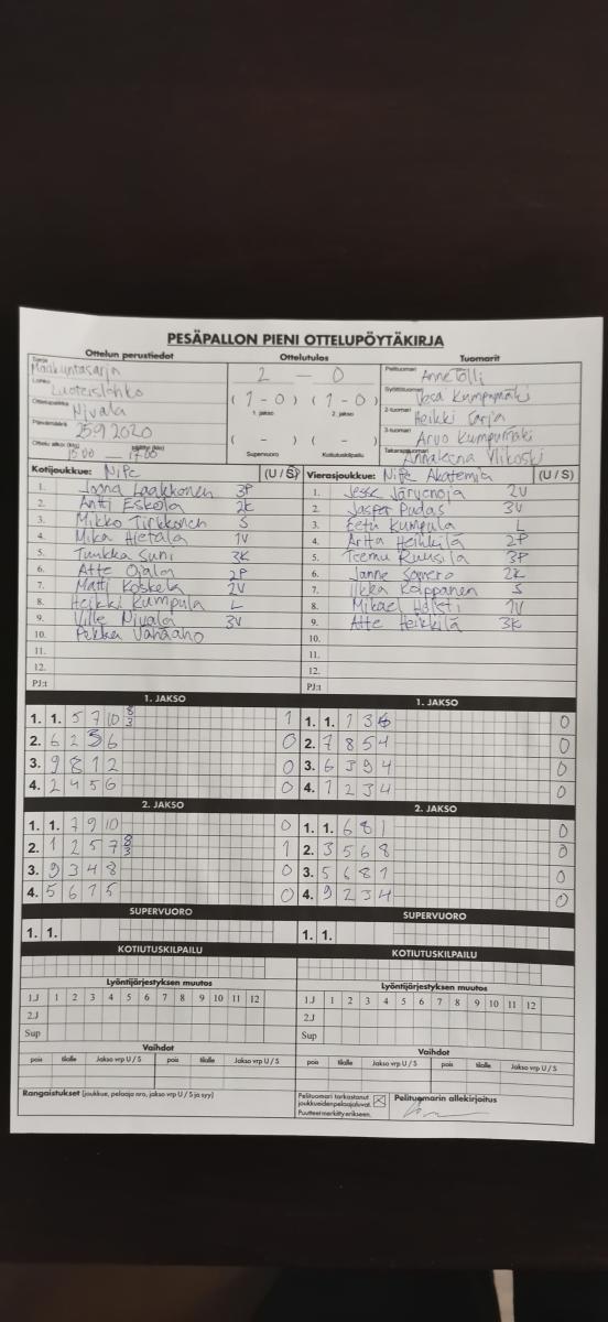 | 837600 | 27.6.2020 | NiPe | Reisjärvi | 0-2 (2-13, 0-8) | näytä |