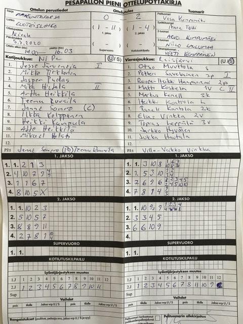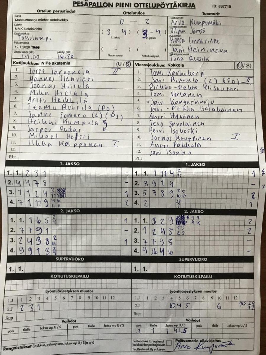 | 837561 | 17.7.2020 | NiPe akatemia | Reisjärvi | 0-2 (1-11, 1-4) | näytä |