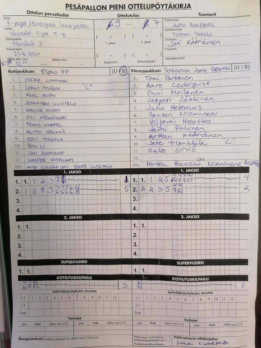 | 853309 | 23.8.2020 12:00 | Törnävä 4 | SMJ F10 white | LMV-F-pojat | 6-8 | näytä |
