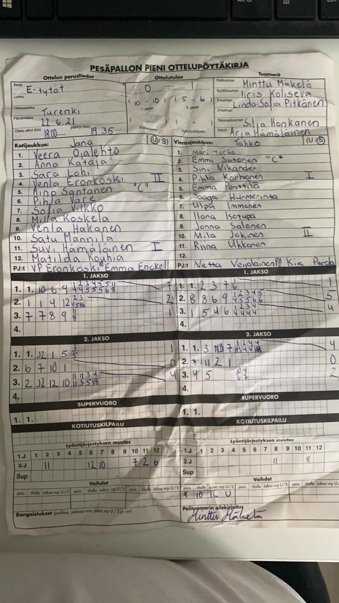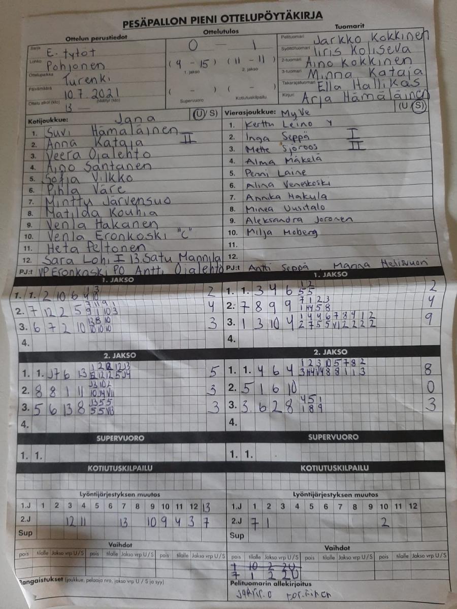 | 918163 | 5.7.2021 18:00* | LP Juniorit | JANA ET | 1-2 (21-1, 5-12, 0-0, 2-3) | näytä |