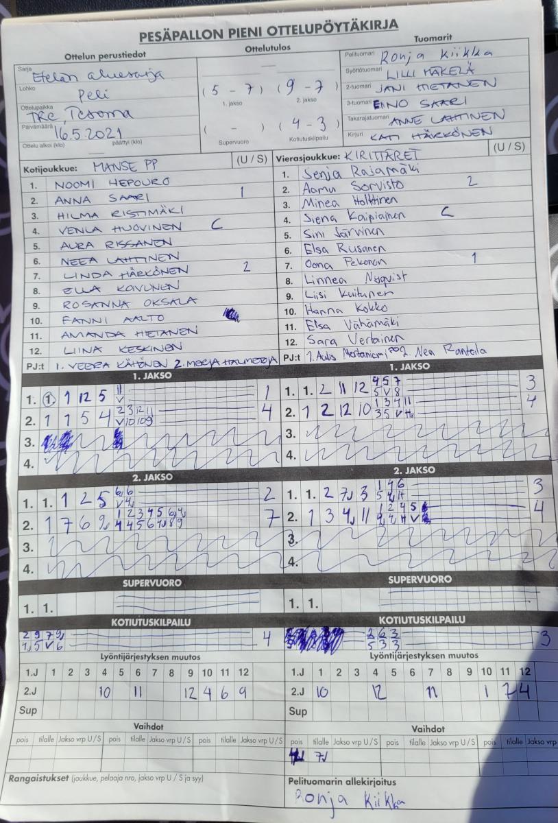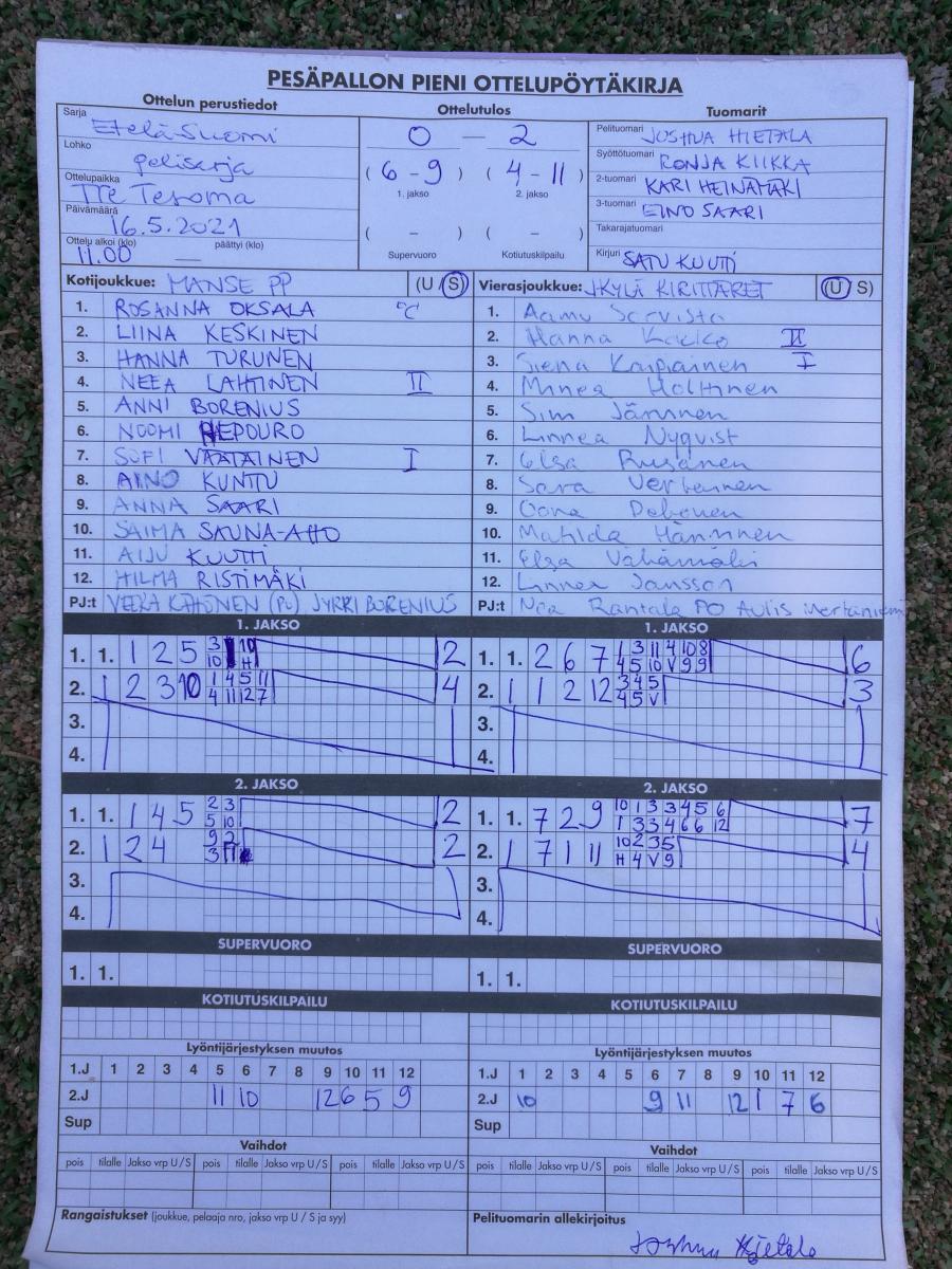 | 912907 | 16.5.2021 12:00 | Manse PP ET | Kirittäret | 2-1 (5-7, 9-7, 0-0, 4-3) | näytä |