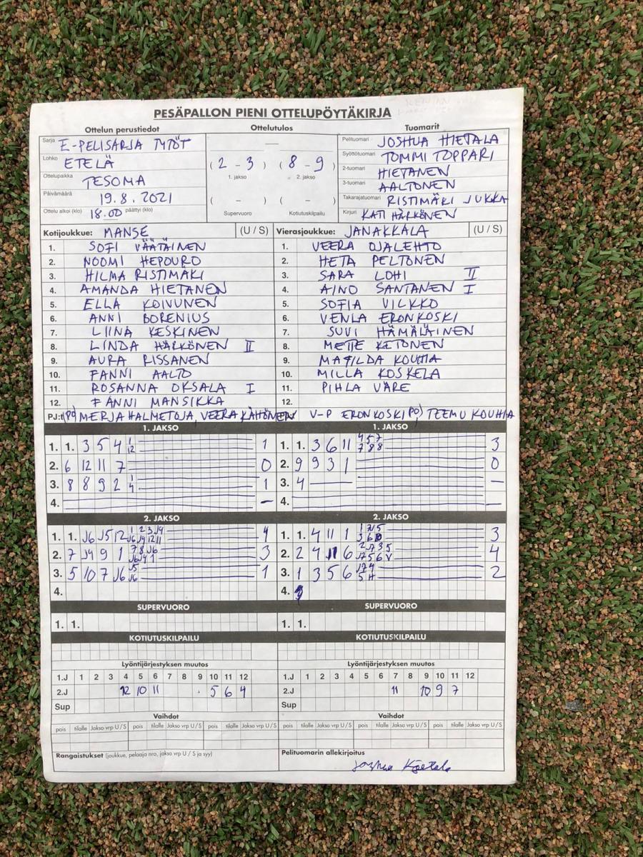 | * 955058 | 15.8.2021 11:00 | Espoo ET | JANA ET | 2-1 (3-2, 5-6, 0-0, 5-4) | |
