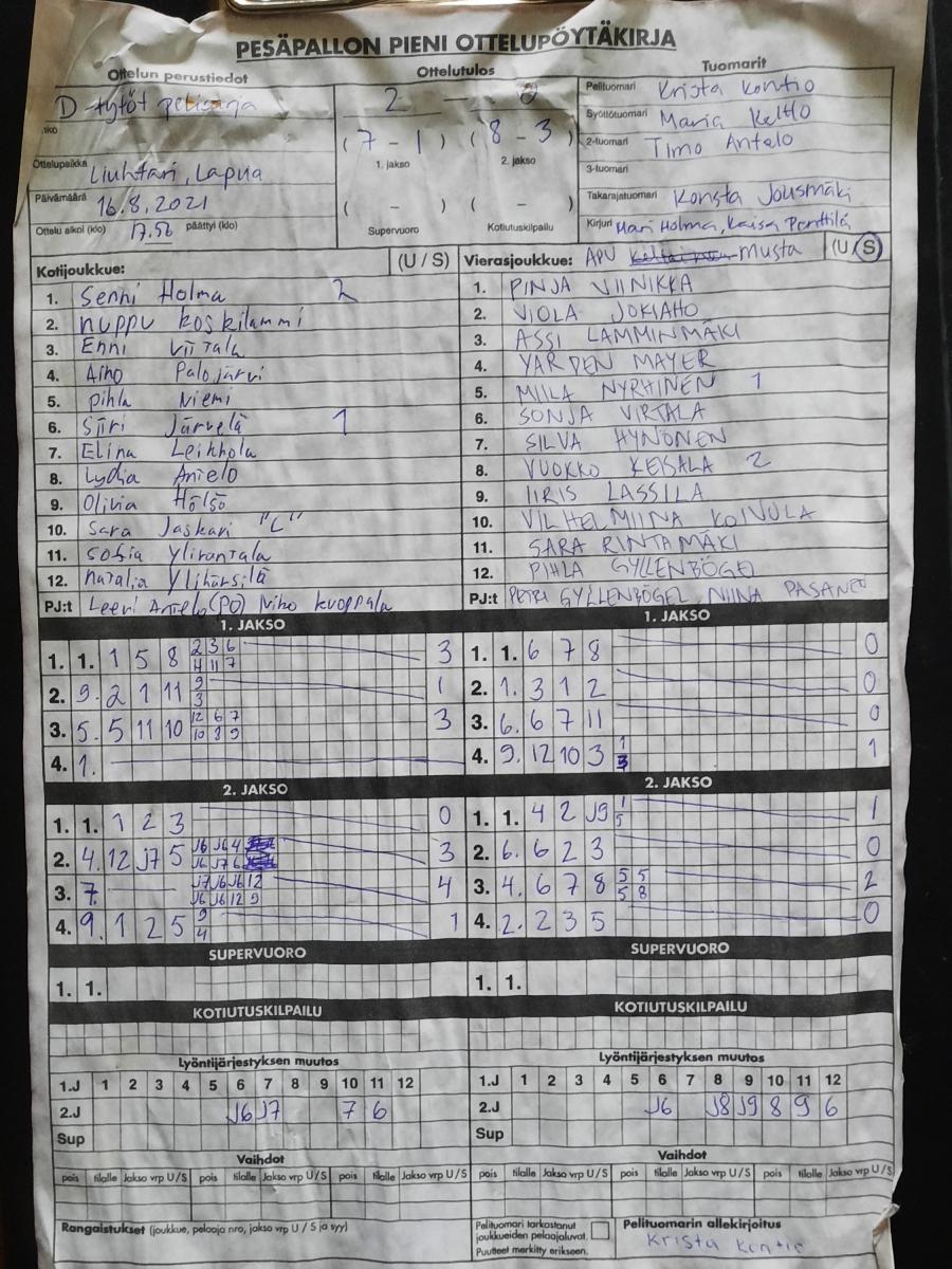 Miesten piirisarja Pohjanmaa Naisten aluesarja lounaislohko Miesten aluesarja lounaislohko C-tytöt aluesarja C-pojat aluesarja D-tytöt kilpasarja D-tytöt pelisarja D-pojat kilpasarja D-pojat pelisarja E-tytöt kilpasarja E-tytöt pelisarja E-pojat kilpasarja E-pojat pelisarja F-tytöt Pohjanmaa F-tytöt Satakunta F-pojat Pohjanmaa F-pojat Satakunta G-tytöt Pohjanmaa G-tytöt Satakunta G-pojat Pohjanmaa G-pienpeli Pohjanmaa G-pienpeli Satakunta Lady-Pesis Pohjanmaa Lady-Pesis Satakunta Kuntopesis sekasarja Pohjanmaa GPP