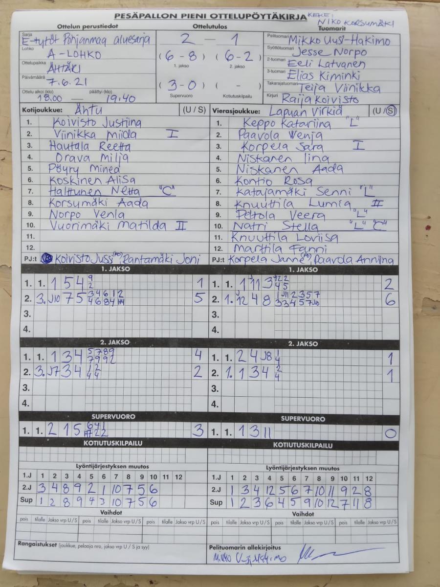 Miesten piirisarja Pohjanmaa Naisten aluesarja lounaislohko Miesten aluesarja lounaislohko C-tytöt aluesarja C-pojat aluesarja D-tytöt kilpasarja D-tytöt pelisarja D-pojat kilpasarja D-pojat pelisarja E-tytöt kilpasarja E-tytöt pelisarja E-pojat kilpasarja E-pojat pelisarja F-tytöt Pohjanmaa F-tytöt Satakunta F-pojat Pohjanmaa F-pojat Satakunta G-tytöt Pohjanmaa G-tytöt Satakunta G-pojat Pohjanmaa G-pienpeli Pohjanmaa G-pienpeli Satakunta Lady-Pesis Pohjanmaa Lady-Pesis Satakunta Kuntopesis sekasarja Pohjanmaa GPP