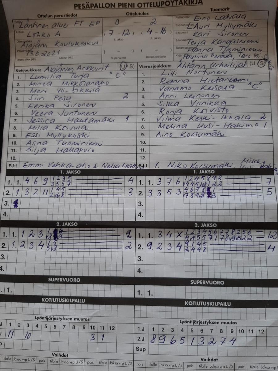 89577813.6.2021 18:00*AAÄhtU F-tytöt0-2 (7-12, 4-16)näytä