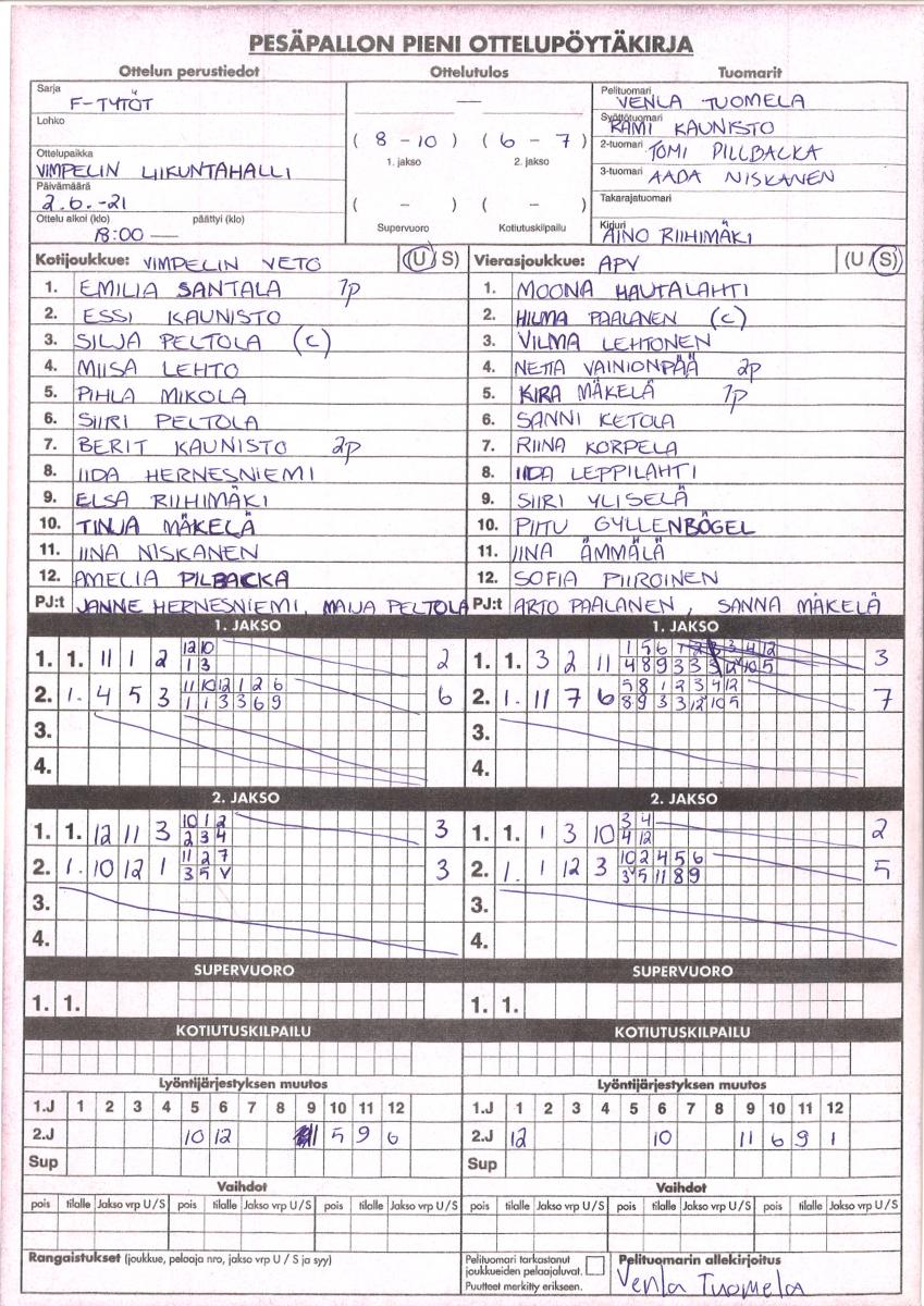8957364.7.2021 14:00*ÄhtU F-tytötViVe2-0 (13-8, 8-5)näytä